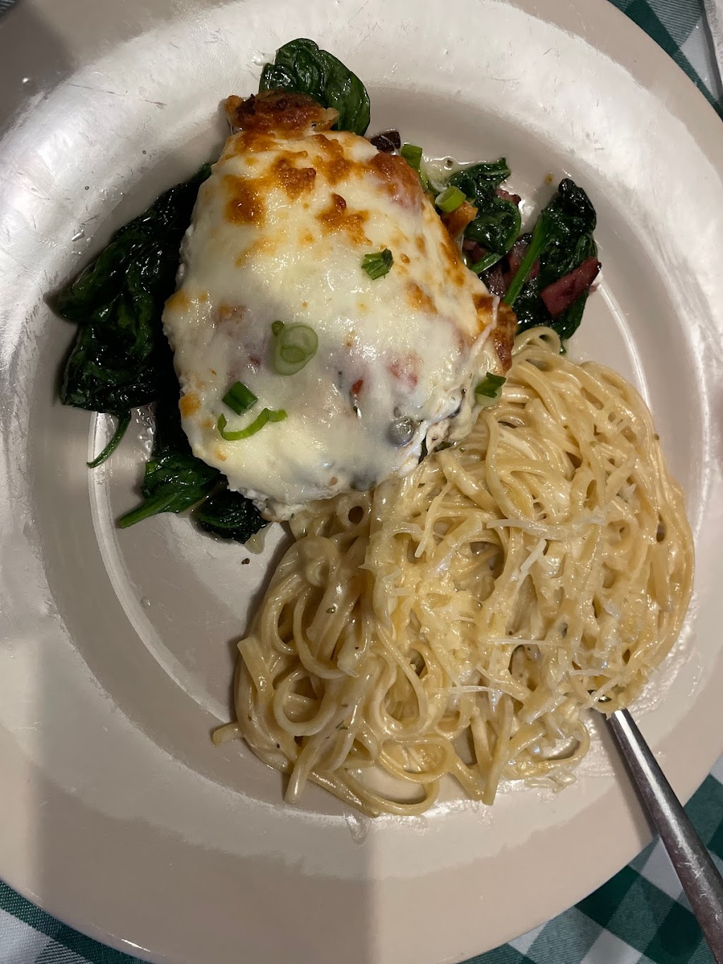 Chicken parmigiana and the gnocchi were both really flavorful and well cooked. The Caesar salad is grilled and it adds a great texture and smell. Kids both liked the spaghetti. The kids Alfredo was a little bland for my taste but they liked it. Staff was super friendly. We ate in the lounge. Service was quick even though they seemed busy