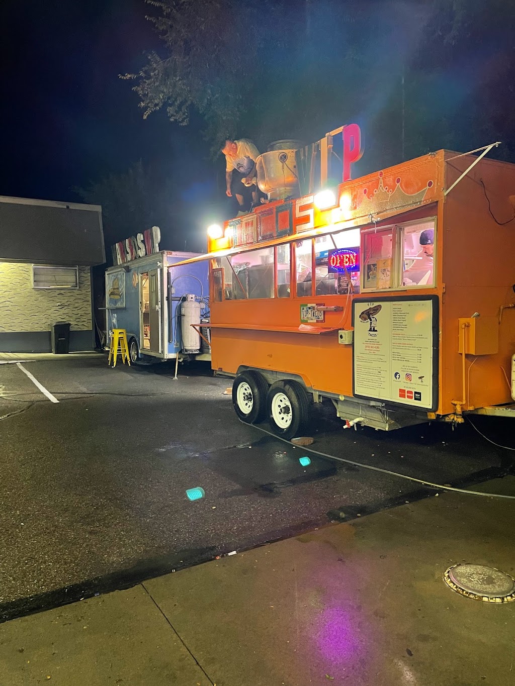 I freakin love this VIP taco truck!!! I’ve been going to these guys since they started right across from startek back in 2016!!! I have followed them everywhere they have relocated to because I feel that they’re that good!!! Currently they sit on North Avenue across from AutoZone. My favorite item that I typically always get is the Chicharrón tacos along with the rice and beans. Their salsa is homemade and better than a lot of sauces I’ve ever had at taco trucks. Tonight I actually got there Tapatio Bria Ramen soup, so good and a meal on its own!!! They definitely take credit cards and they have beeper’s so you could sit comfortably wherever you choose to sit.