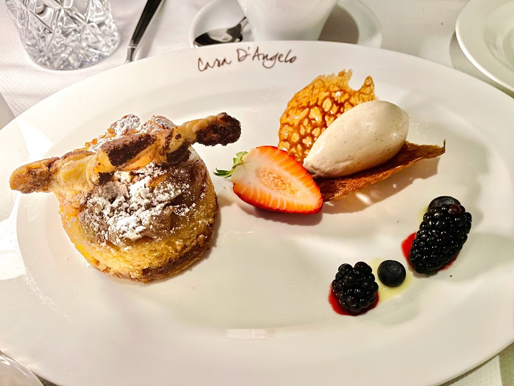 We had a fabulous dinner at Casa D’Angelo. We had a Buffalo Mozzarella that was out of this world. I had the Veal Chop special stuffed with Prosciutto and cheese with a wild mushroom sauce it was so delicious and tasty. My wife had a lobster dish and that was a bit too salty for her. Service was impeccable and the staff was very accommodating to all of our needs and questions. Would definitely go here again. Reservations are highly recommended.