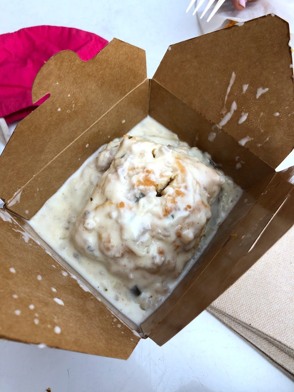 Really nice people and a cute place. Biscuits are way too sweet and more resemble cornbread consistency.
