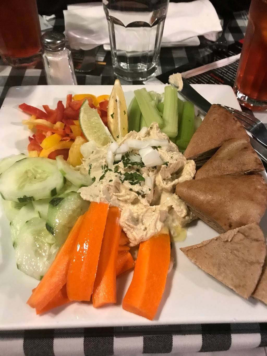 Came in for a solo meal. Got the mixed grilled dinner dish. Got a fresh carrot juice. The salad with the tahini is nuts. Then the grilled chicken, chicken sausage, and shrimp with clean rice and veggies and some creamy pepper sauce. So good. Feels good and tasted great. Now going to close up the night with Mississippi mud pie. Be warned ! It’s fire
