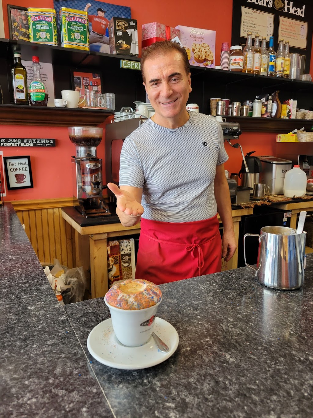 One of the best cappuccinos around. Vibrant atmosphere, the guy making the coffee drinks was great. Looks like a place that has a lot of regulars and I can see why. Small menu but good quality. No one was wearing face masks, I don’t care but I know some really do.