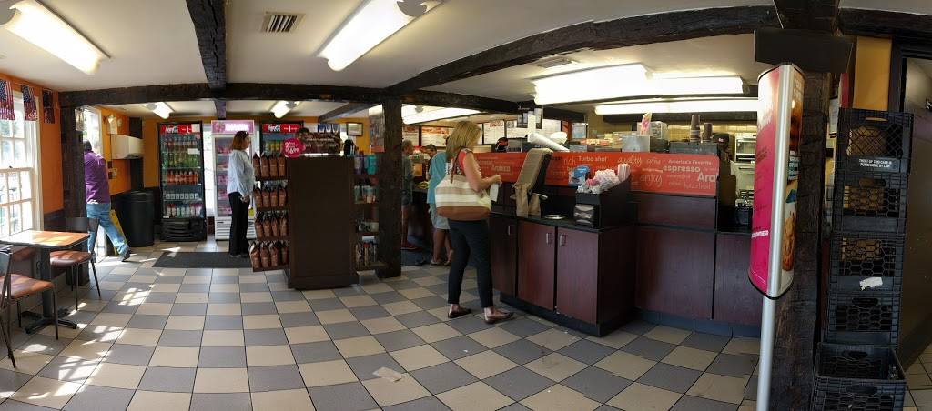 Could use remodeling, although I'm sure the decor is part of the New England look. No restrooms, etc. Have gotten some pretty bad coffees here but depends on the server. 4 stars for convenience.