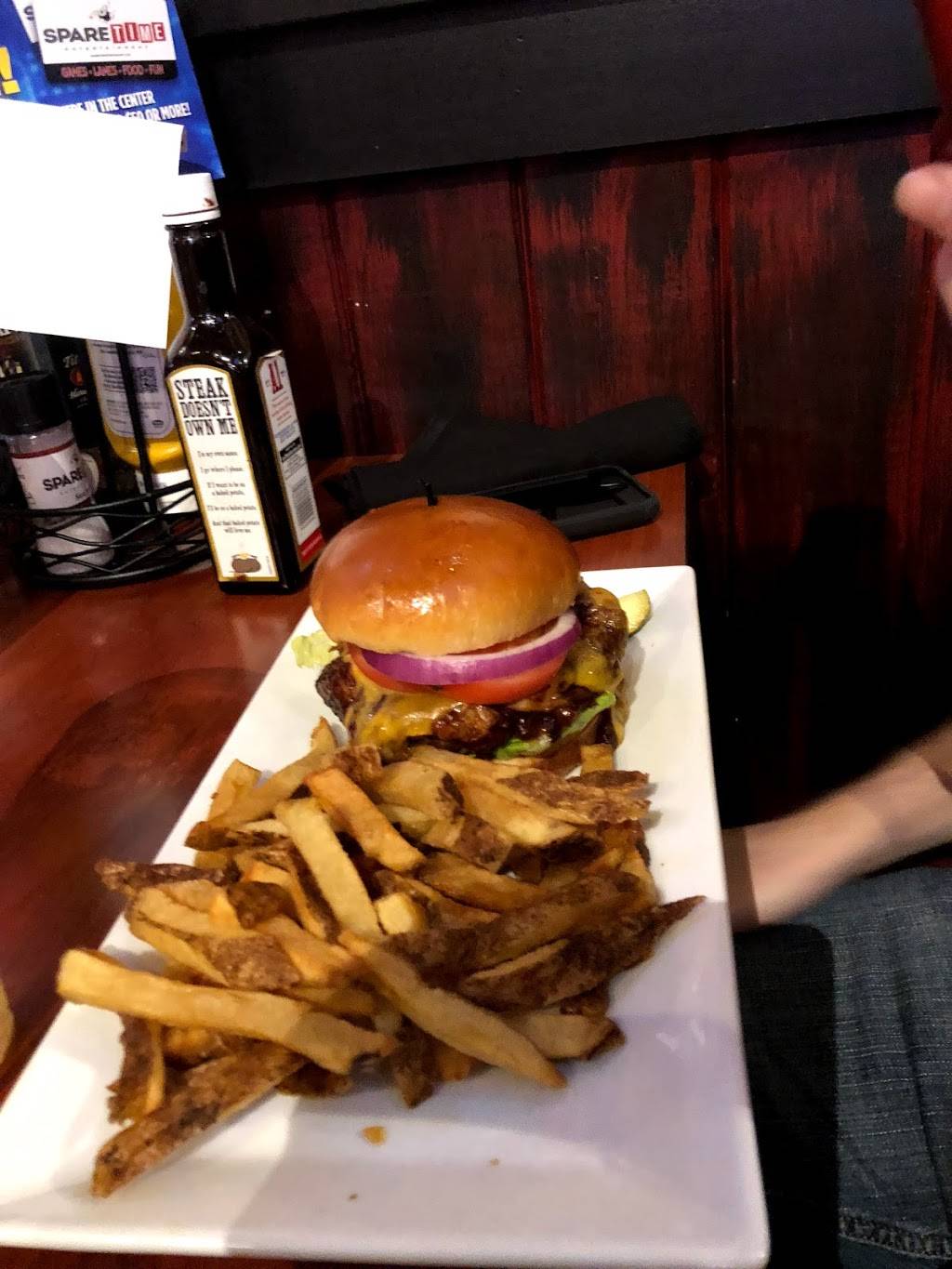 This was a great place to hang out and enjoy some great food and have fun too. It is attached to Spare Time lanes, which definitely upped the fun factor. (Arcade, laser tag, bowling). I was expecting bowling alley food or basic bar food and was happily surprised with my tasty cooked to order dinner. Please see my review for Spare Time for pics of arcade and lanes.