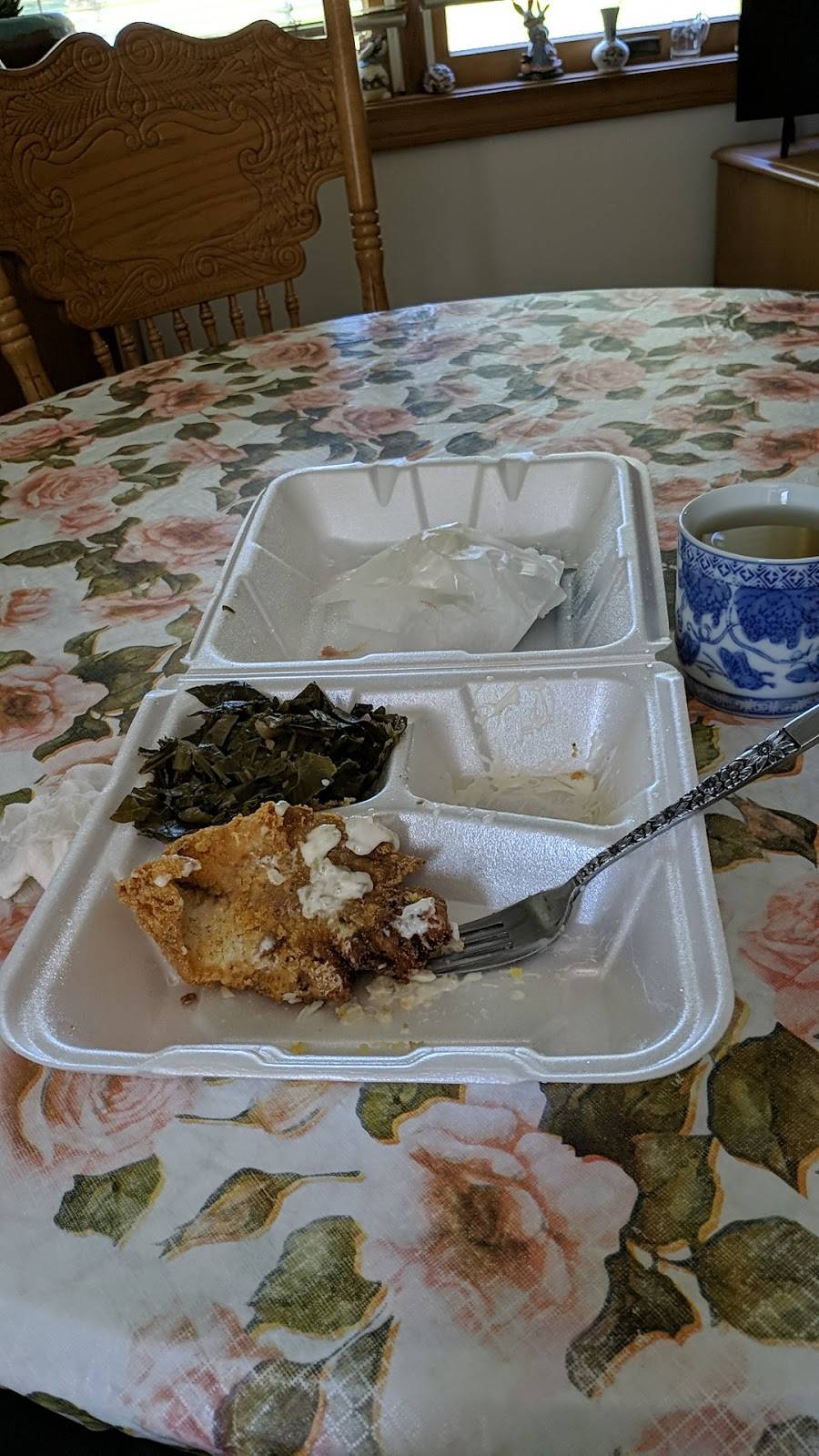 Everything was cooked to perfection. The atmosphere is comfortable, clean, and friendly. I had whiting, collard greens, macaroni and cheese, and cornbread. I had to beg for a bite of the cornbread and macaroni and cheese, because my grandson ate most of it. It's more like he devoured it! I highly recommend, "My Wife Didn't Cook." I will be a returning customer.