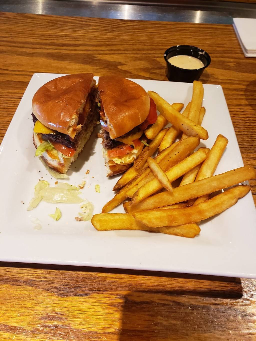 Great service even during aa heavy rush. Servers seemed to help one another, which allowed everything to run smoothly. No one looked overwhelmed. It seemed they enjoyed their jobs. Management stopped by to check on us. Very attentive servers and management