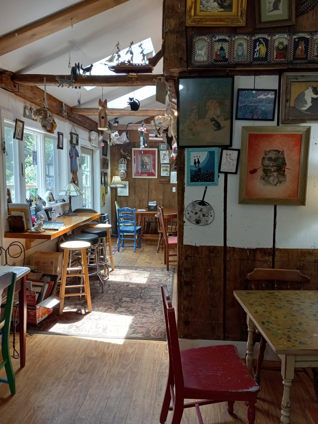 This place was amazing!! Me and a friend were in the area (staying at a Getaway Outpost) and found a pic of this place on Google. So we decided to go. We called ahead and asked if we could bring a dog. We were told yes, that the cats gave permission for her to come in. They even had homemade treats for her. The owner Mark was so friendly. He even gave us some recommendations for places to see in the area. It was great hearing from him about how he started the cafe. The decor is amazing. (And I don't really like cats.) It was great to see cats from around the world. As a Japan enthusiast I spotted hello Kitty and manekineko. The food was great. I had a grilled cheese and the shrimp and corn chowder. Very homey and tasty. They even were nice enough to give the pup a little meat of her own. I would definitely recommend checking it out if you were in the area. I also appreciate the social justice messaging they have outside and inside. I highly recommend a visit to the bathroom. I'll definitely be going back.