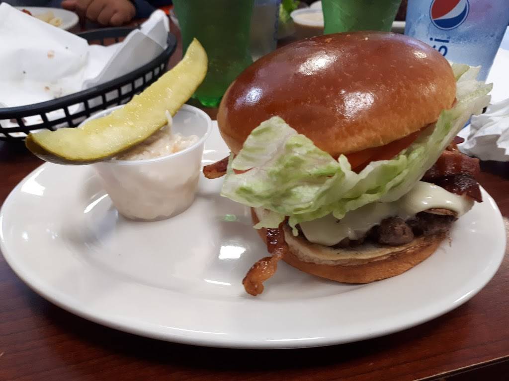 Hi, Fab tasting burger with amazing large fries. My hamburger came with lettuce and tomato and was juicy delicious. The size was huge. Definitely going back to get another one. Place was clean, waitress was fast, friendly and an example of what other restaurants should have. Kid friendly too.