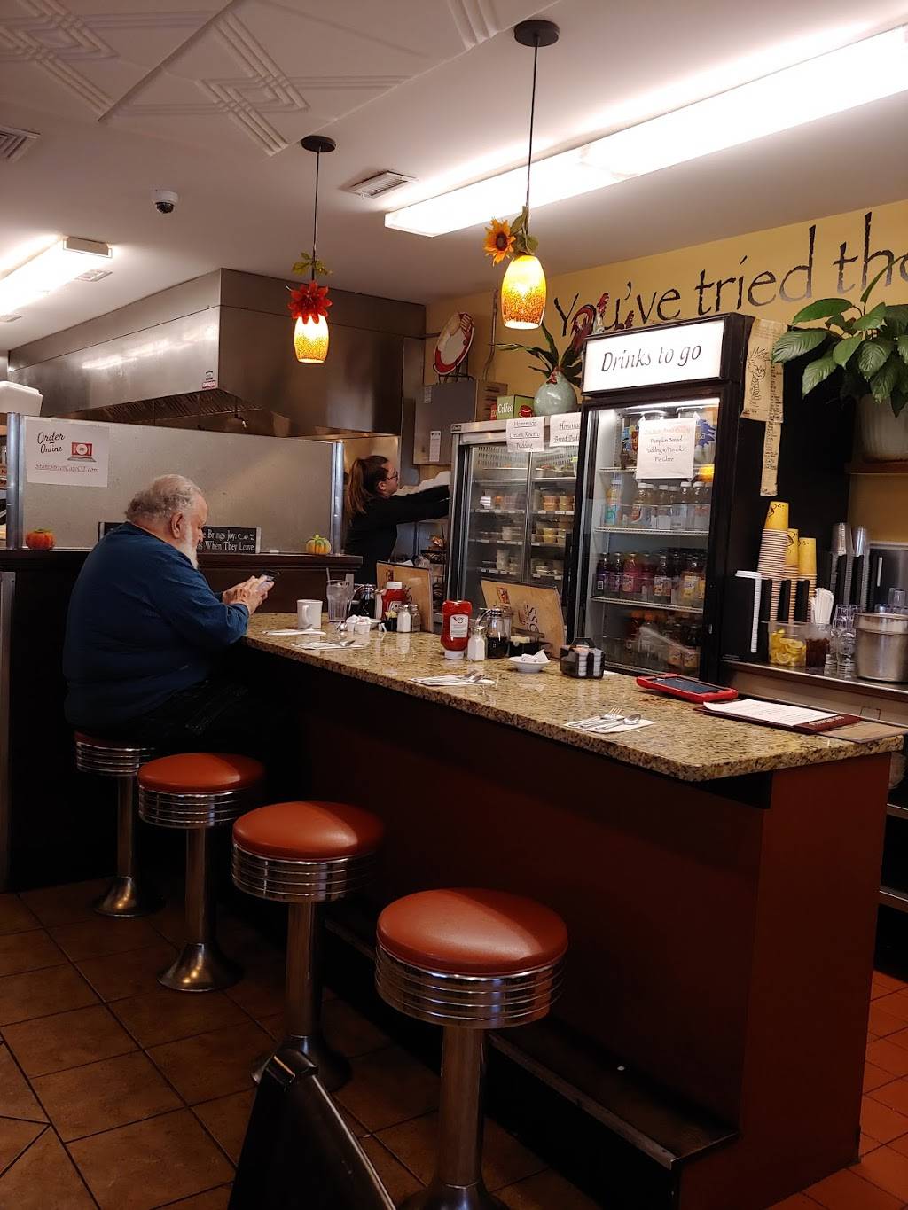 A busy weekday lunch with generous portions and fast service. I got the omelette with avocado and it hit the spot, and the side of bacon was perfectly crispy. Prices are a bit on the high side for a diner, but if you are feeling like breakfast for lunch this is a great local spot. You choose the tip at the register, and it looks like it calculates based on the total with tax - some people prefer to tip based on total for food not including tax. The person next to me got a salad, and it also very generous portions. All in all, it was good eating.