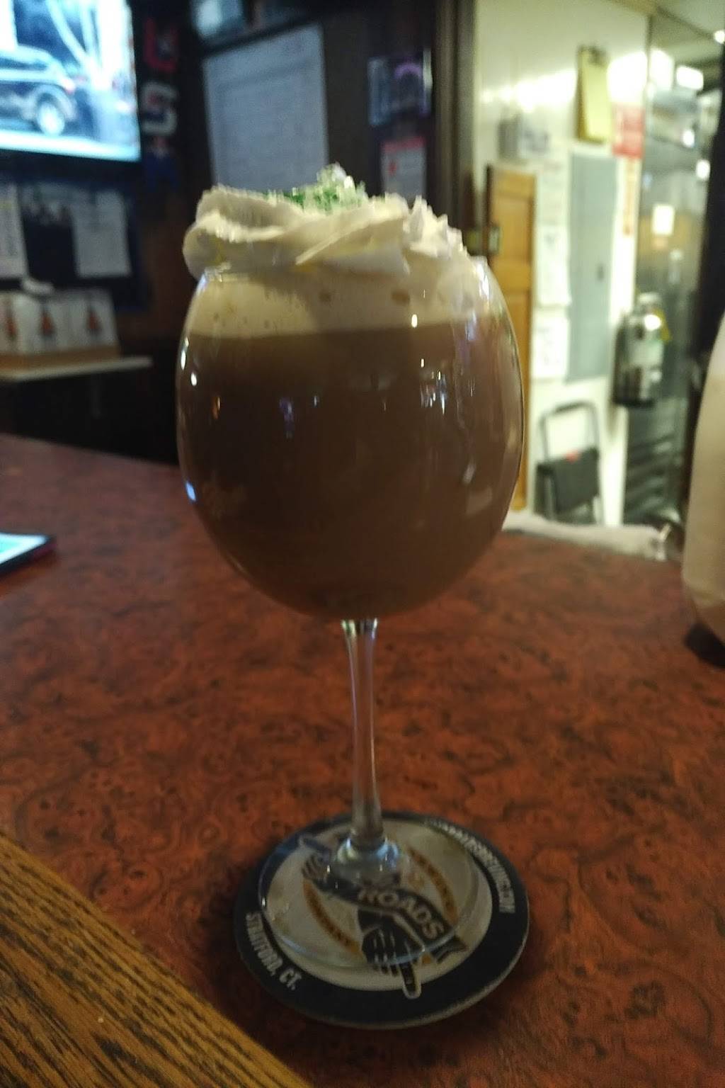 Despite being a quintessential dive bar with its dark interior ensconsing four booths, four tables, and the ubiquitous twenty foot bar, there is a quirky charm to this place. There are four modern televisions, an atm, a jukebox, popcorn machine, and the place is well kept. Food prices are reasonable if not cheap (1/2 lb burger $10, 10 buffalo wings $10). The stuffed clams are superb. Kelly and Vinny (in photo) were very helpful and friendly.