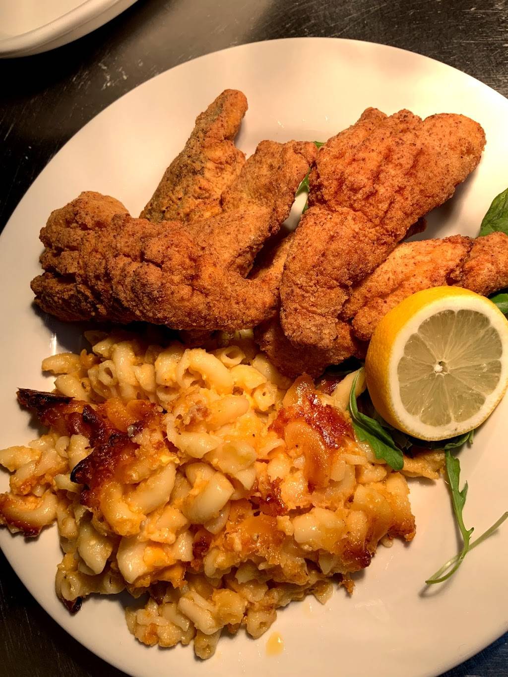 The food is excellent, seasoned to perfection! Cajun food with exceptional cocktails. I got the chicken and waffles, but everything is good.