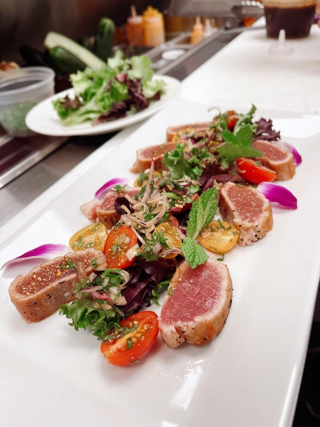 First time tonight we tried Tuskers. This beautiful restaurant is beyond amazing. The food is top notch, the way they prepare and present your plate is top notch! The food flavoring is perfection! The portions are kind but not heavy. You want to dig in but also take your time to enjoy every bite. The staff are very professional and so kind. The atmosphere is cozy, the temperature was perfect inside for a chilly evening and it was peaceful, even though it was a full house. The world did not seem to exist once ypu step inside. The lighting is exquisite and a band was playing but the music wasn't obnoxiously loud. We enjoyed our time and will return again and again. I think they should ( just my opinion) put lounge chairs where the high tops are). But if you're just going for a cocktail then they're good. But the table tops are small and that is probably because the place isn't large but you have enough room still. I was glad we were able to sit in the lounge chairs though. Still 5 stars! Thank you for servicing us.