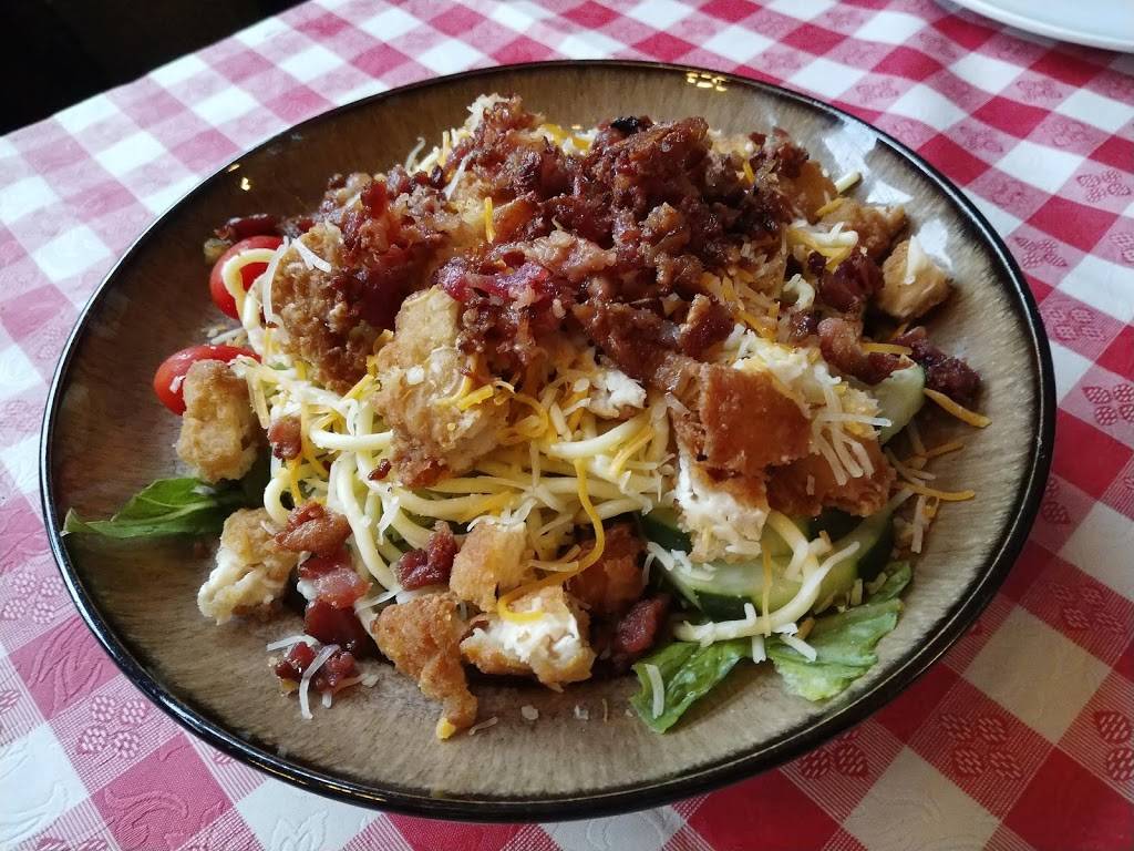 First time here. I had the chicken parmesan which was very good and my boyfriend enjoyed his spaghetti with meatballs and sausage. He said a little more sauce would have made it a little better. These came with garlic bread and a salad which was good, but difficult to cut up in the plastic bowl which kept tipping over and spilling its contents on the table. It would be a bit better if it was served on a plate.
