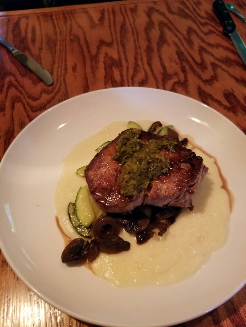 Great atmosphere and service. The bar area has multiple parties getting along and having a good time while the restaurant hosts private parties. Good menu but a bit limited. There are options for everyone but regulars might get bored. Beer menu is on point. This is a favorite date night place for my wife and I. It's dark and romantic and has a fantastic vibe. If lot it full, park across the street in the shopping center. It's worth the short walk.