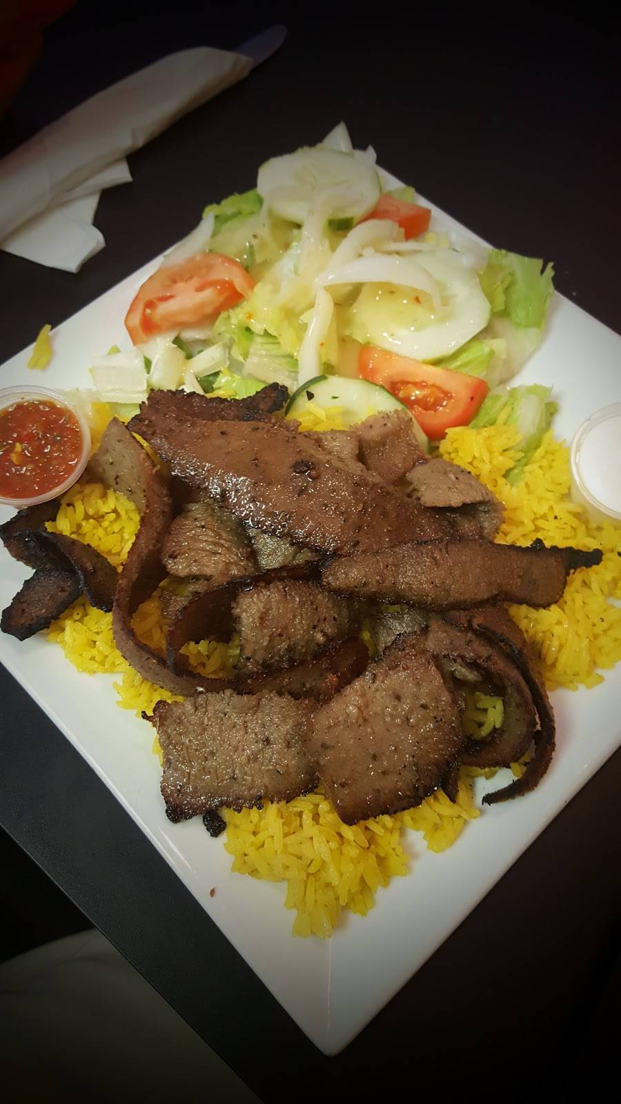 Great food! Got take out order that I walked in and ordered, roughly 20 min wait, food looked as fresh as it would be in the restaurant. Lamb kabob platter was excellent and i tried the arayess app, first time eating it, was great too. Hope to come back here again.