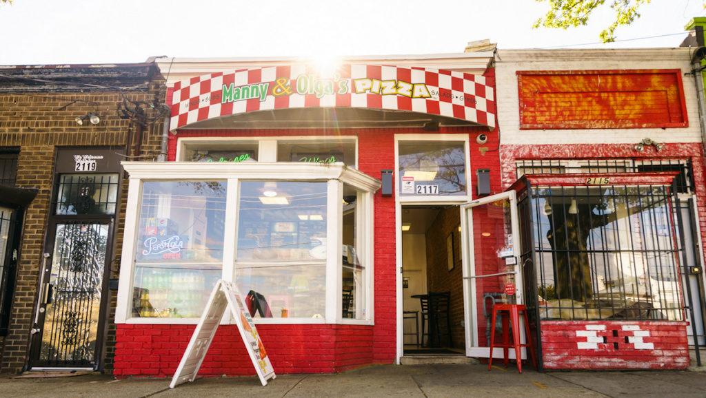 Manny and Olga's is niocely above that threshold. Good, hot, large portioned italian meals. Subs. Pizzas. Etc.