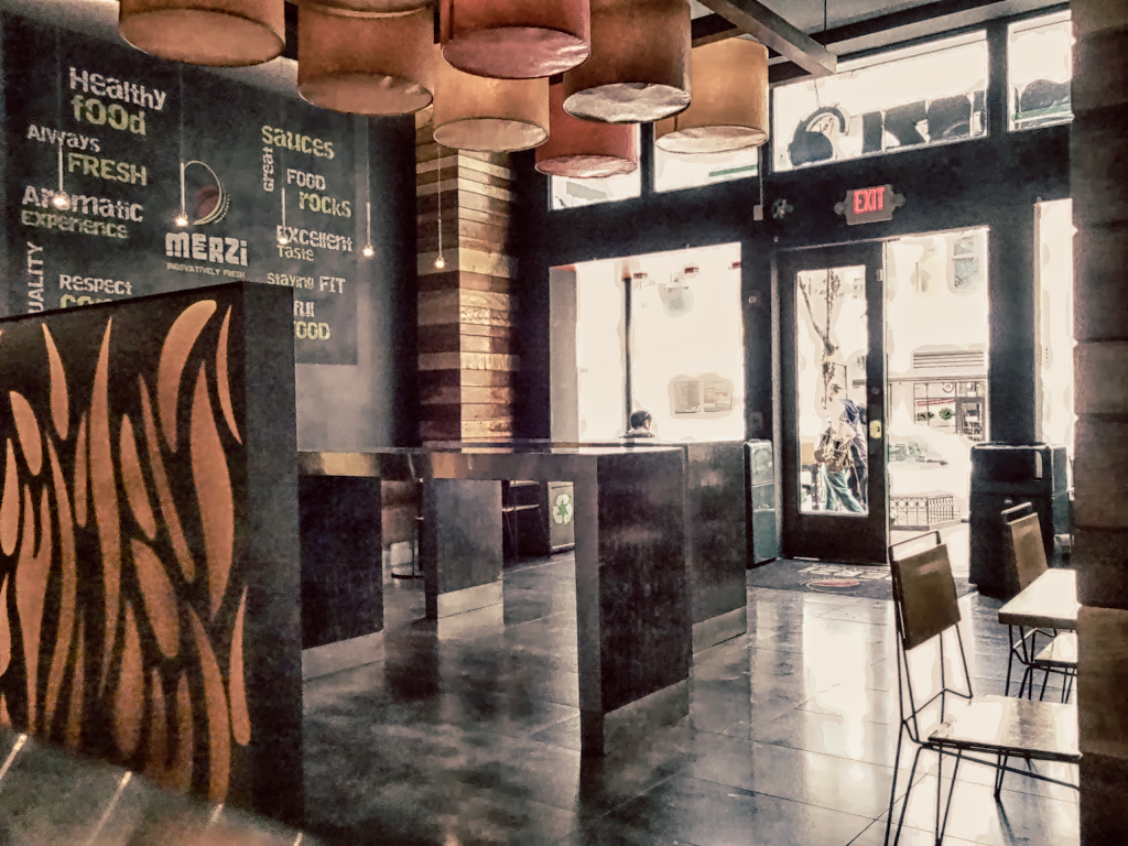 Chipotle-style casual dining. Got the veggie bowl with chicken, mild warm sauce, tomato-cucumber salad, red onion, and garlic yogurt sauce for $10. It was delicious and filling; I took half home. Staff was friendly. I was here at 12:30 on a Saturday and it was empty.