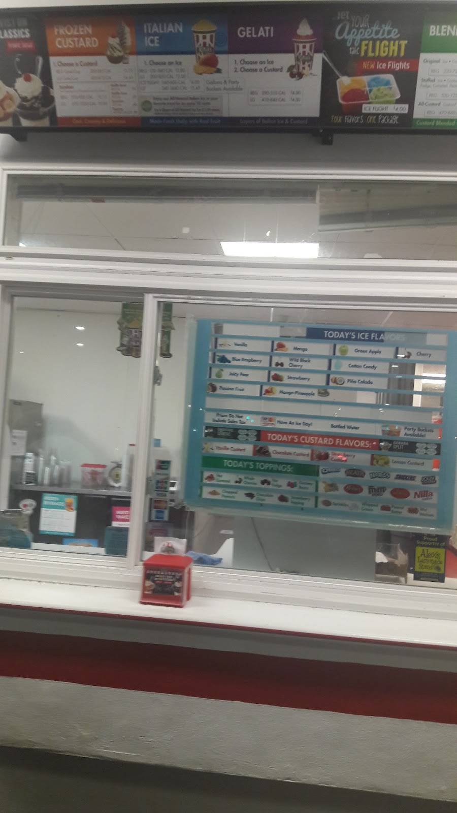 They were out of a lot of flavours such as watermelon and cherry. But the service was nice. The ground is very sticky from when people drop there Rita .