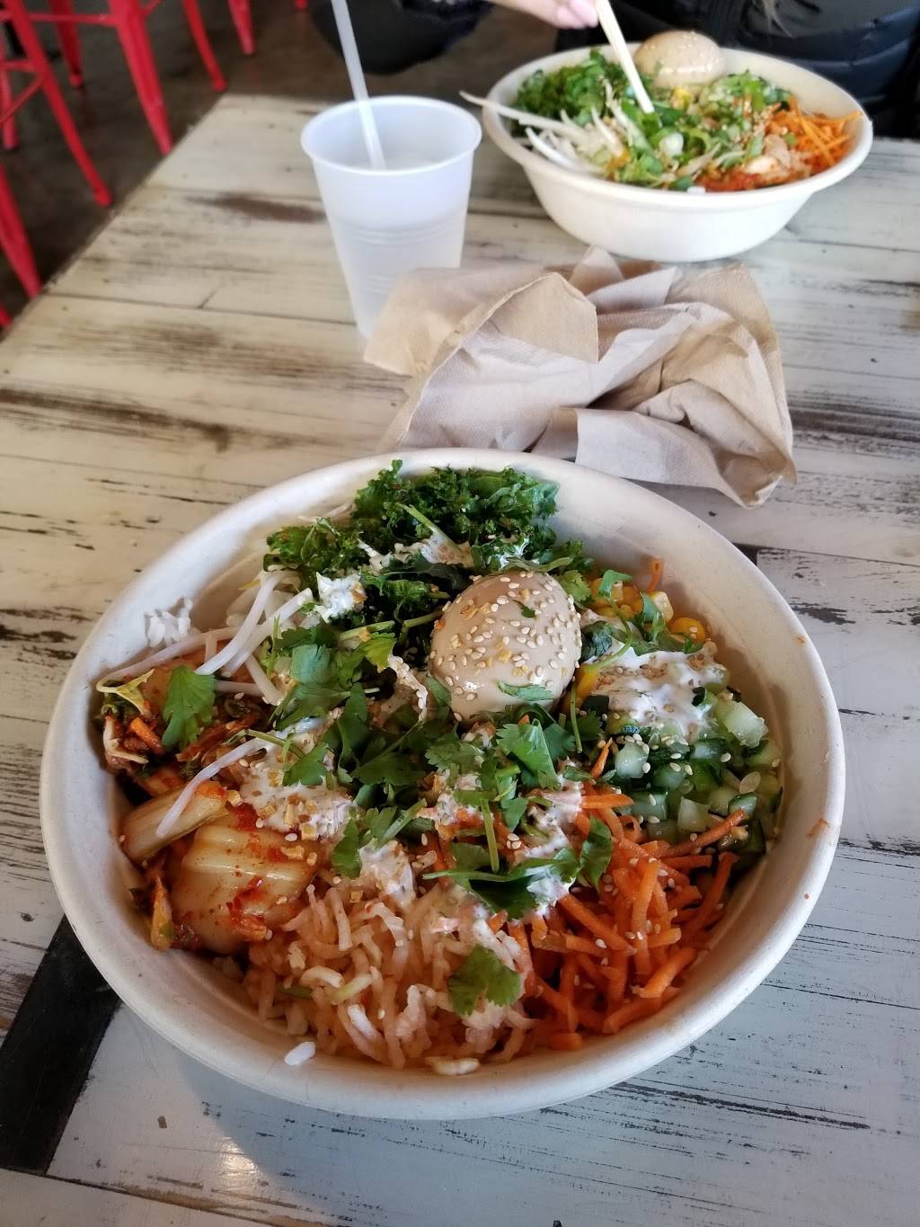 GF-friendly, delicious rice bowls, quick prep, plenty of seating. (No table service). Just outside Noma on the Red line. Exit the other end of the station (FL Ave.) to see the under-bridge light installation (art).
