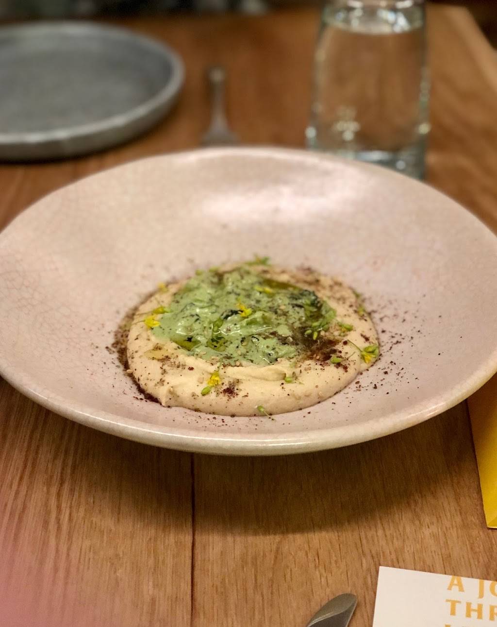 Beiruti style hummus - a hummus with baked broccoli on top with harissa underneath, the flavors all paired together well and the broccoli added a good counterbalance to offset the hummus.