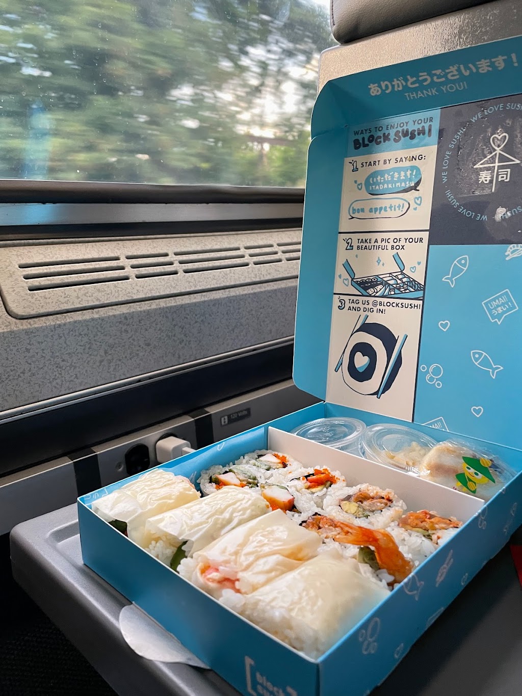 The good, yes there is some. The “Block” roll and the “Zone” rolls were excellent, top tier rolls. The presentation was great. Love the big blue box to with separate spaces for each roll we ordered. The included disposable soy sauce dishes were welcomed. Good amount of ginger...just really missing the wasabi!