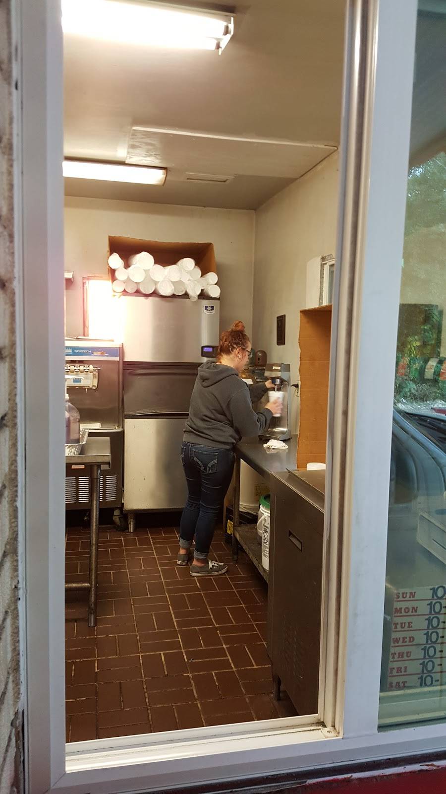 Good burger and onion rings. Also had a dmsuper burger all the way was good. We had a chocolate shake and a strawberry shake which both were good. Price was great.Fast service and friendly drive thru ladies. Recommend if your in the area.
