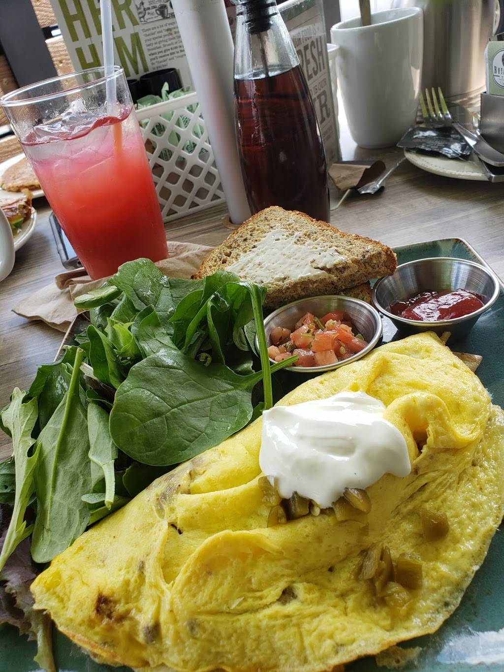 So, I tried a New Thing today. First Watch. I took my mom out for breakfast and she had a coffee, french toast and "million dollar bacon". I chose the turkey omelette with feta,spinach,onions and tomato and hot tea. The bill was $32. Kinda pricey but I believe some proceeds go to ending child hunger. The French toast portion size was very filling per Mom. The bacon was good but not exciting. My omelette was a good portion size and I was pleased with the taste. Overall I was satisfied and I might revisit to try other menu items.