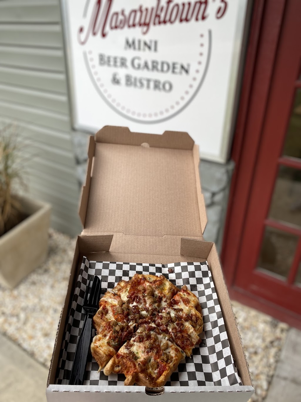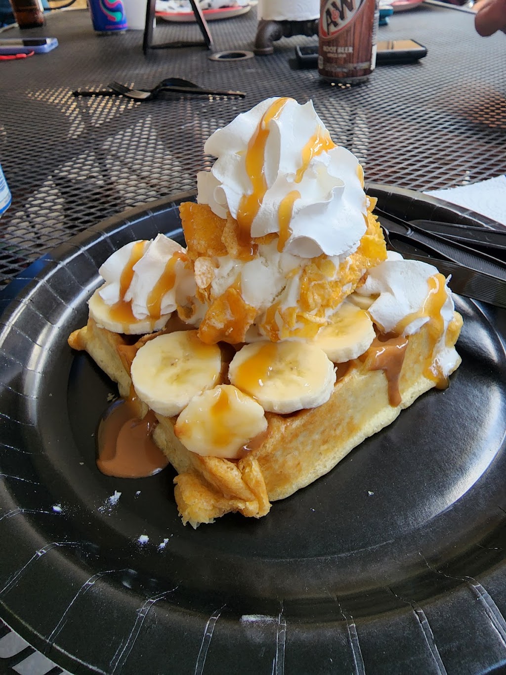 Tasty garden salad! Very filling. The place to go if you like waffles or pizza. Both indoor and outdoor seating available. Friendly and fast service.