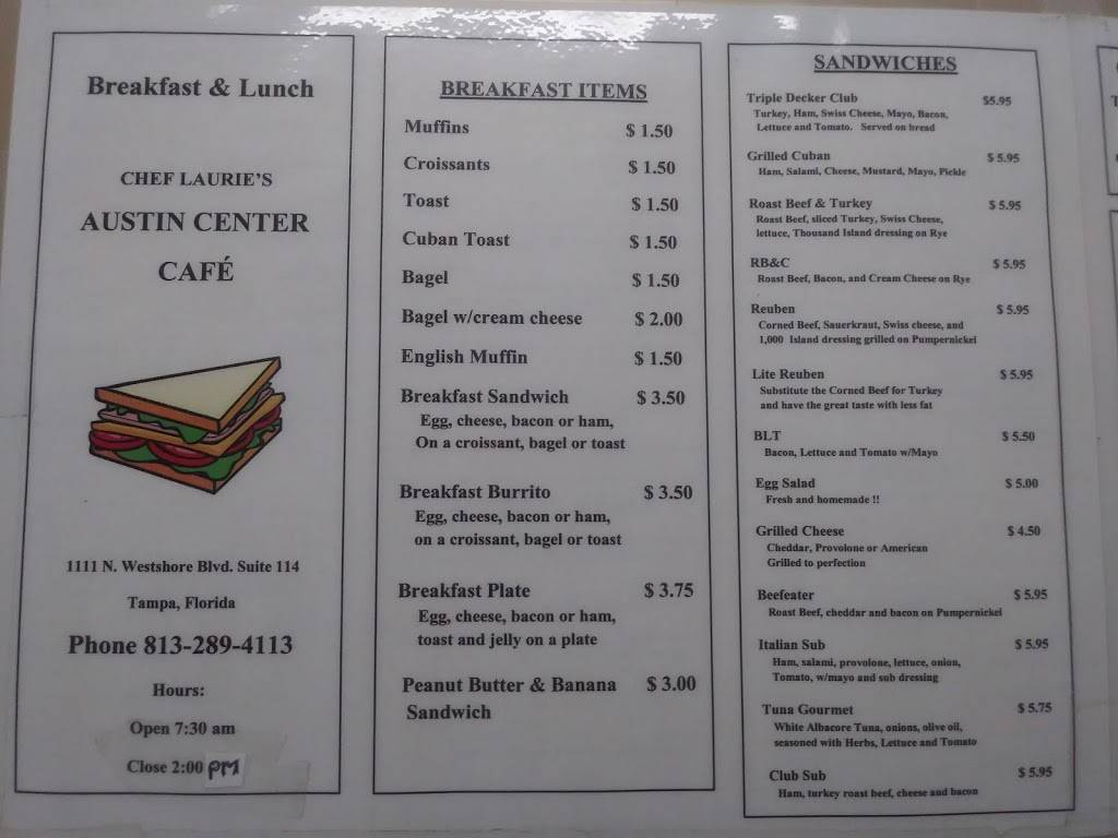 Austin is one of the best places to have lunch lunch at I've been eating there everyday for over the last past 5 months and I'll tell you what the help is incredible the food is very tasty I highly recommend the Cuban sandwich and of course on Wednesday to Chile is incredible