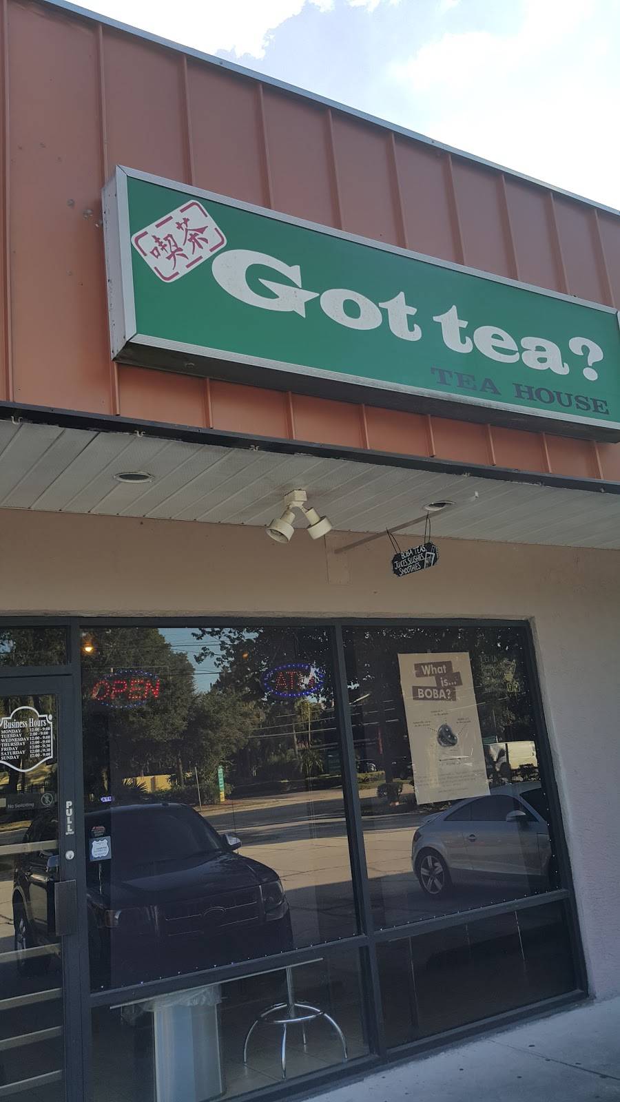 CASH ONLY!! I wish we had known that when we went there but luckily we had cash. They do have an atm but sometimes it's not worth the hassle. The parking lot it's located in didn't have any spots at all so we had to park next door. Tea was great though but there are others within 10 minutes or so with easier access and accept cards.