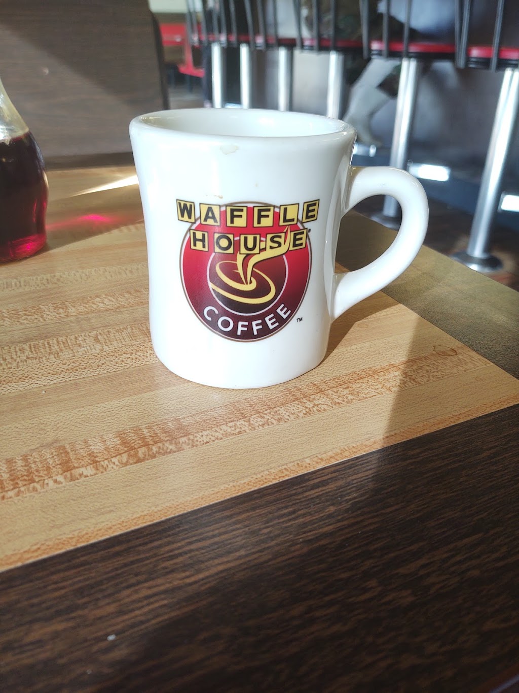 I was traveling, so this isn't my usual waffle house. It was pretty much on target. My waitress was very busy but she was attentive to my single table.