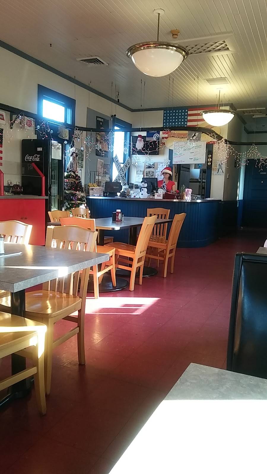 Overly impressed with this establishment. Train memorabilia around restruant spiced up place. Owner/ waitress very friendly. Prices not bad either
