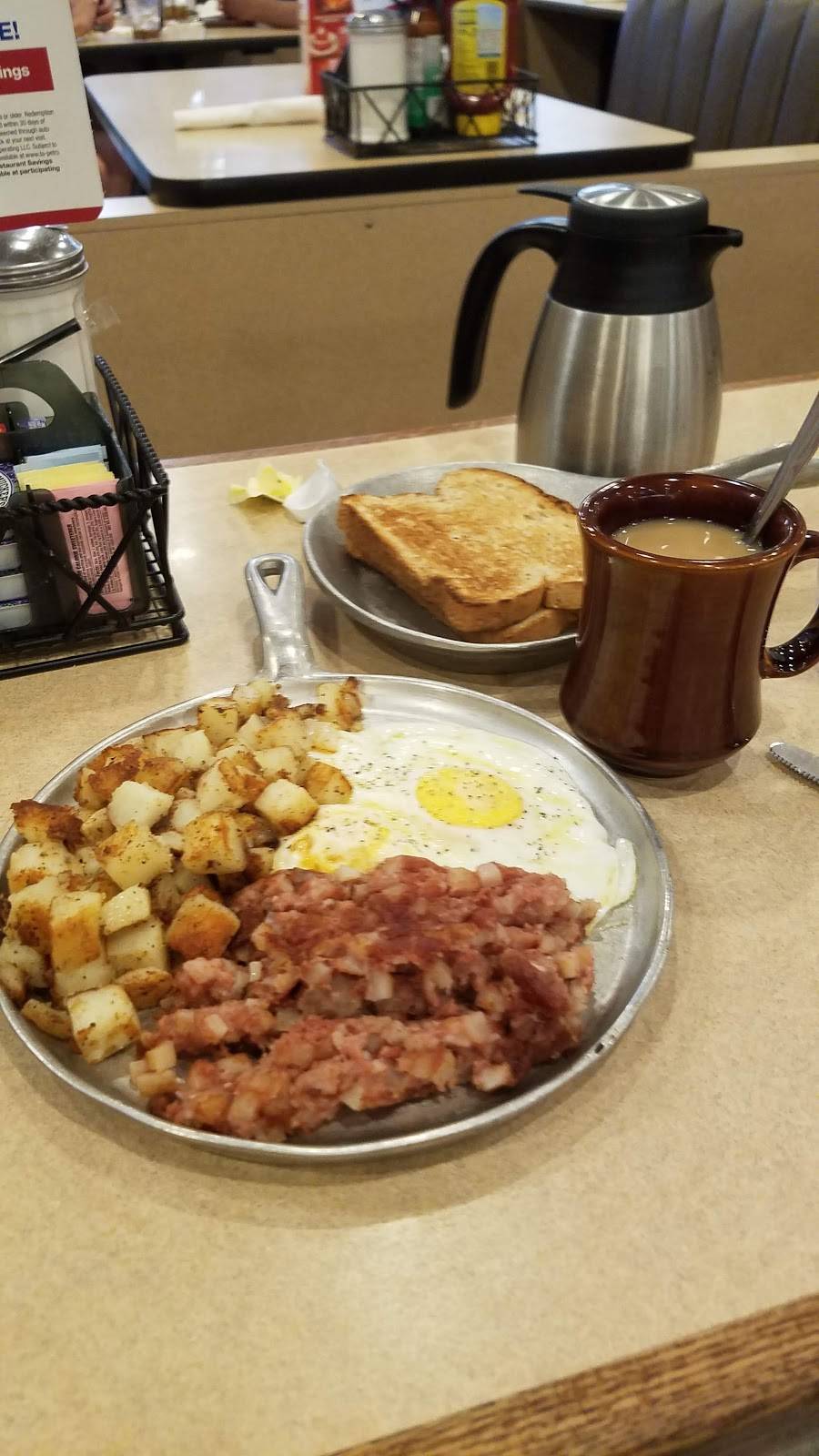 The Iron Skillet is a large restaurant in a truck stop at exit 368 on Interstate 75 north of Ocala, Florida. The Iron Skillet serves a lot of good food at reasonable prices. Attached is a photo of my $8.99 French Toast combo that includes 2 eggs, and 2 sausage patties. It was a lot to eat! The Skillet also offers an extensive breakfast buffet for $10.99 that includes a chef station for omelettes. Note that coffee is an additional $2.79. I visited the Iron Skillet with 30+ other members of our motorcycle club. The Skillet provided a comfortable meeting room for us to dine in. 2 exclusive waitresses were assigned to our group. The manager stopped in to check on us. My only suggestion is that you may want to choose the buffet if you are with a group. Some of the menu meals came out a little slow which is to be expected when a large group arrives. Overall The Iron Skillet did a very good job of serving our motorcycle club's breakfast ride this morning.