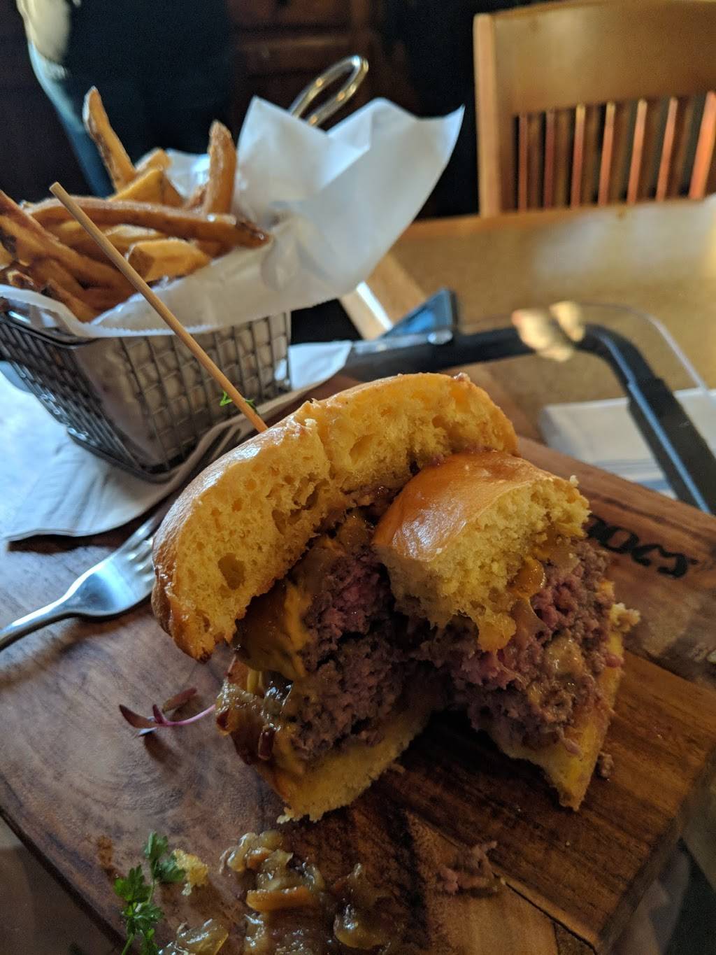 My wife had a burger which she said was super moist and flavorful. I had the pork tenderloin and collard greens. The greens were absolutely superb I was rather shocked... The tenderloin was good but I was hoping for a bit more depth of flavor.