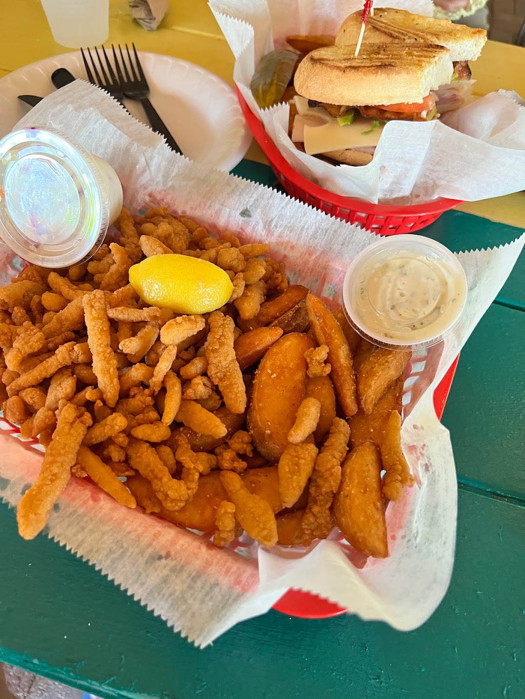 Food was typical. We had nachos,pizza and fried shrimp. They give you a lot of food. Took a while to get our food but at least it was hot. No real complaints. The waitress was very sweet. Definitely an interesting find if you like to get lost when you are on vacation. Would recommend. If you drive further out past the pub over the bridge there is a lovely little place where you can take pictures.