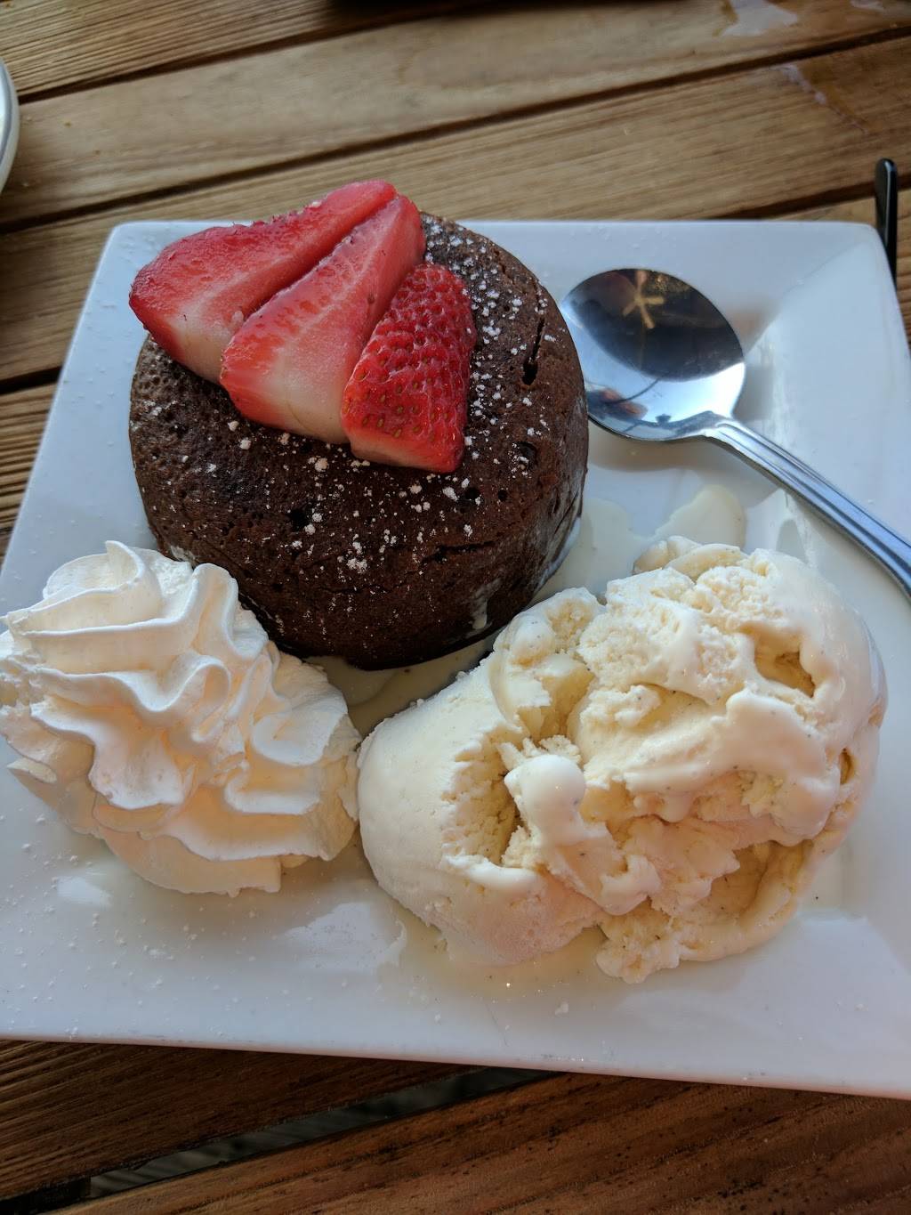 Clean great staff right one the water, awesome atmosphere!! Great outdoor and indoor seating. Beautiful for sunsets! A LITTLE pricey but very yunmy!