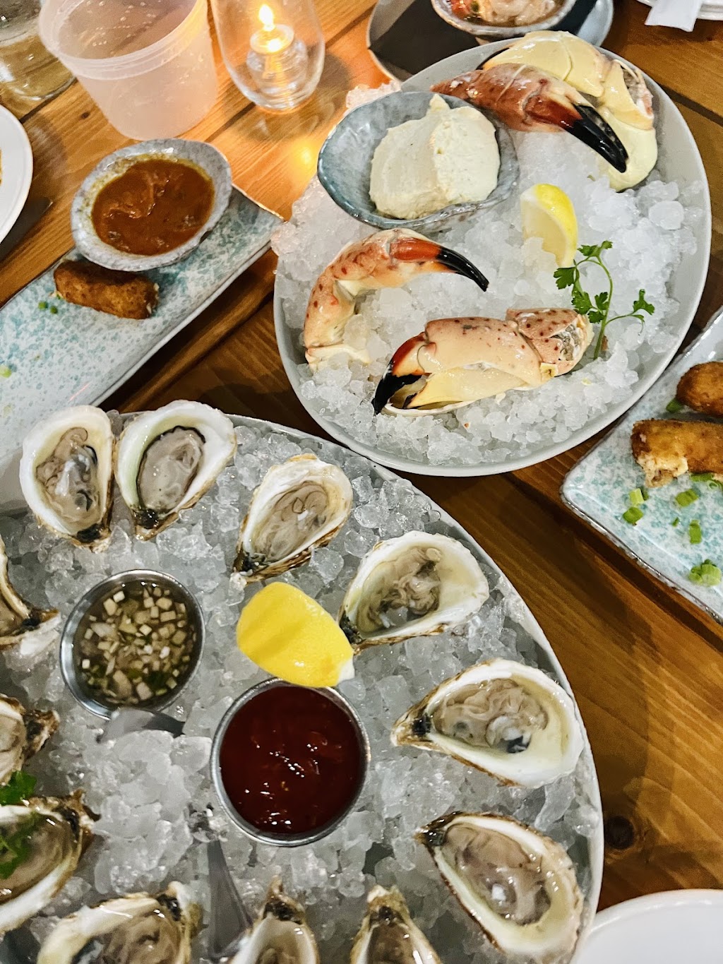 Casual by the dock restaurant with water views of the marina. The service was vg, the girls awesomely helpful. The food was outstanding and between 5 of us we tried a lot of the menu. Everything was excellent but the baked oysters got a huge wrap!