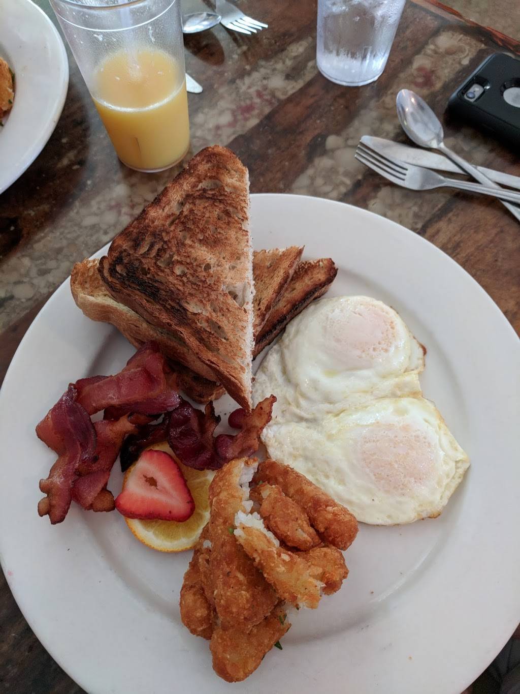This is my favorite spot for breakfast in Jupiter. Food and service are always fantastic. If you sit outside you can hear and smell the ocean. The beach is litterally a few feet away. I've tried everything on the menu but the tropical fruit plate is something I dream about on cold nights up north. Mimosas are also not a bad way to start the day.