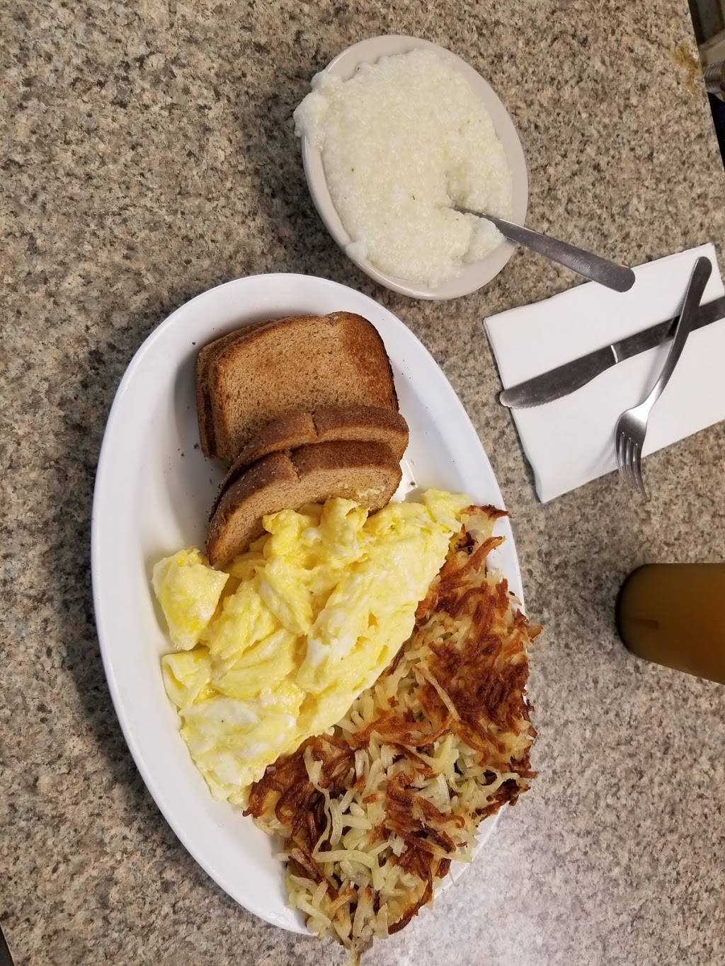 Exceptionally friendly service. Hearty and unpretentious menu with homey atmosphere. Menu must tries are pancakes and patty melt. Must remember to order cobbler, cobbler and cobbler-to-go!