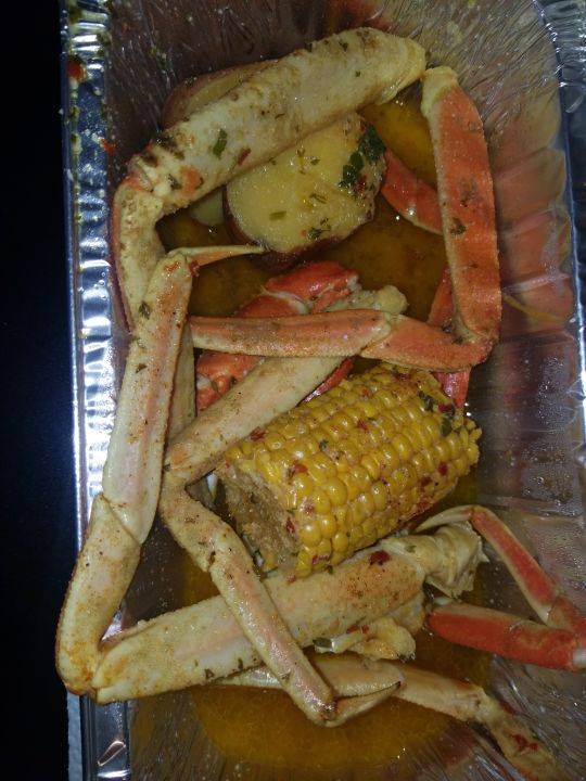 I got the one crab cluster with potatoes and corn special for $7.99. It was super flavorful. The corn was overcooked but it probably continued to steam on the way home. I got my order to go. For a drive through restaurant and the price I am thoroughly impressed. I will definitely return.