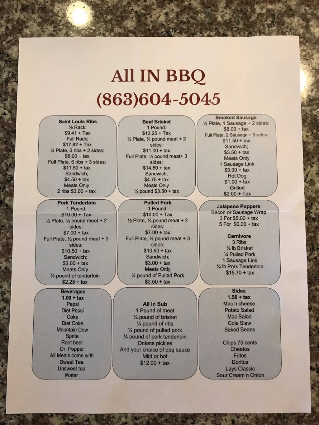 Ordered both the Brisket sandwich and the pulled pork sandwich. My five year old ate every bite of her sandwich ( she normally complains and does not eat all of her food) My family and I stopped here on our way to Disney world in Orlando. We were making the commute from Tampa Florida. A very clean set up, the sweet woman helping us was very kind.