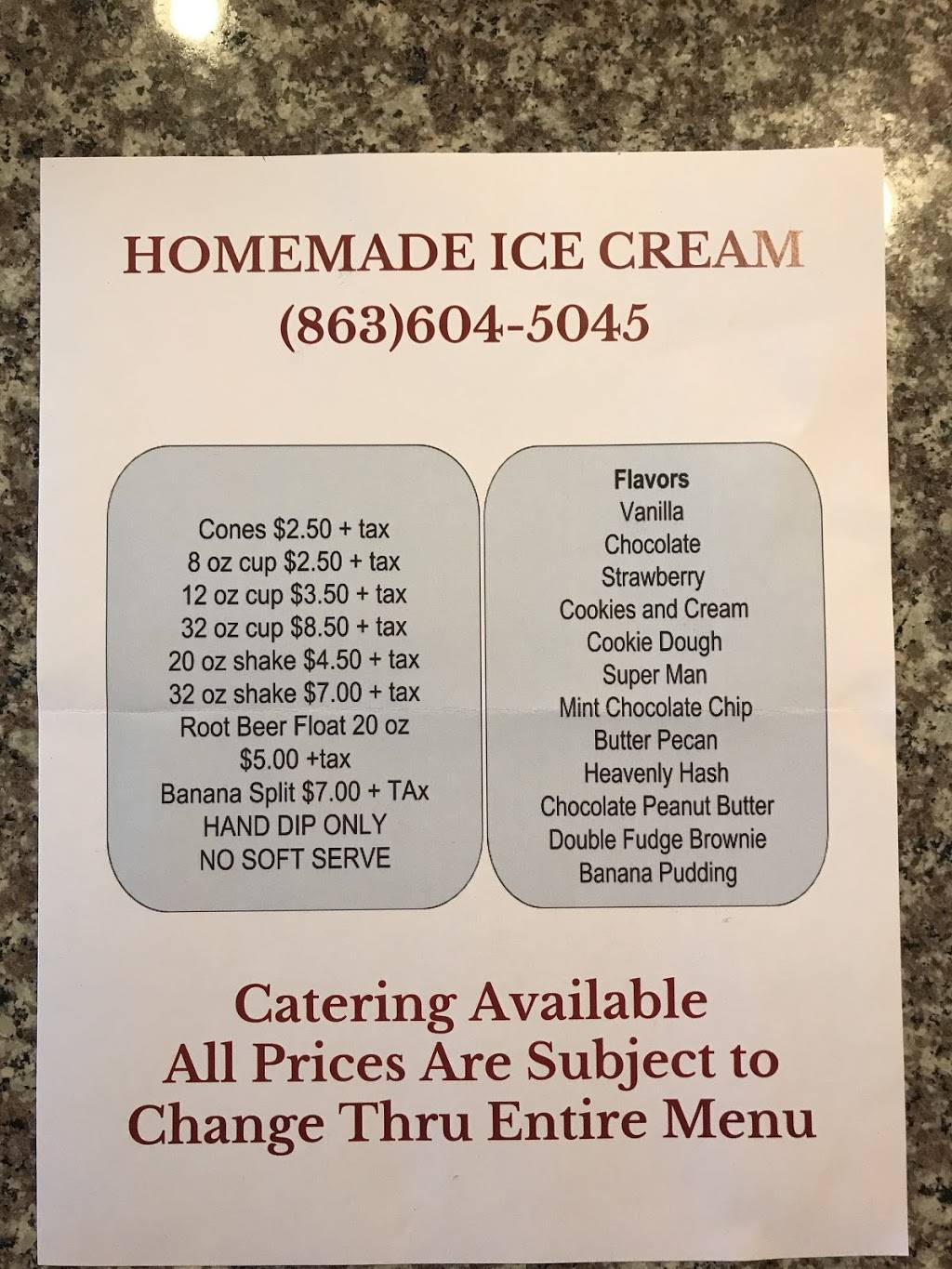 Great ice cream and banana splits.