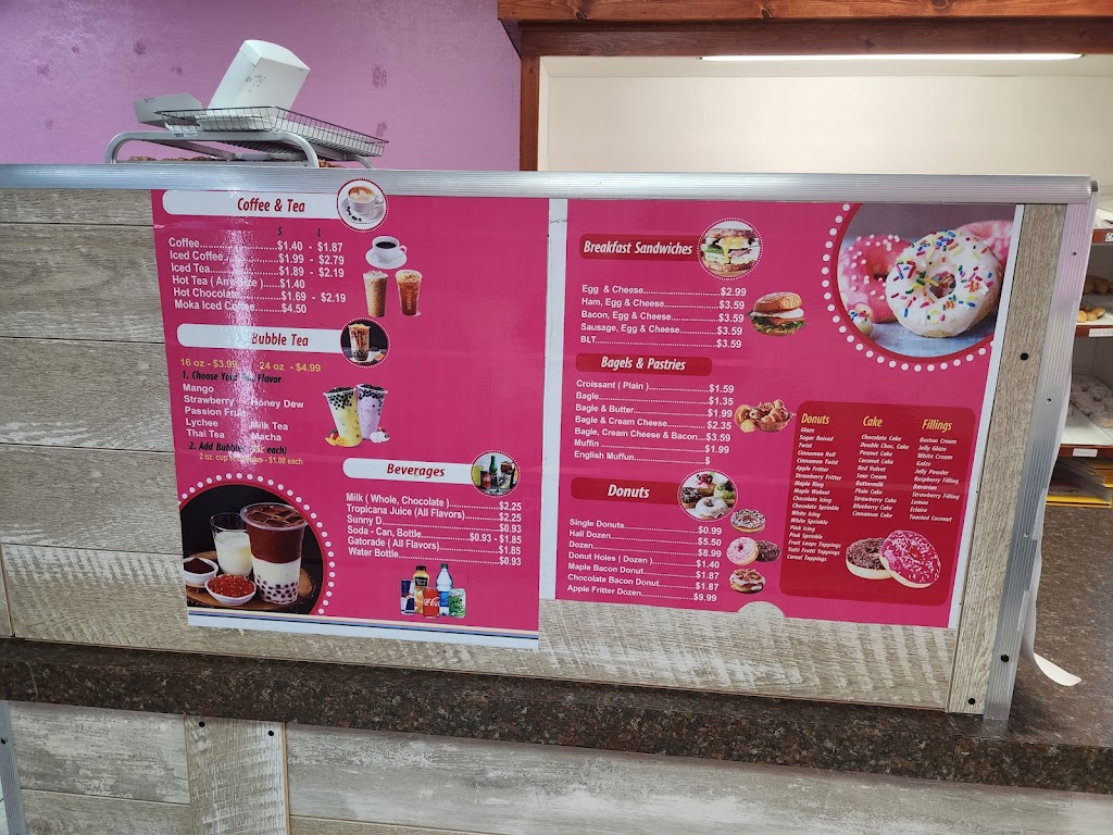 They are mostly breakfast sandwiches and donuts! But have bubble tea, coffee, and soda.