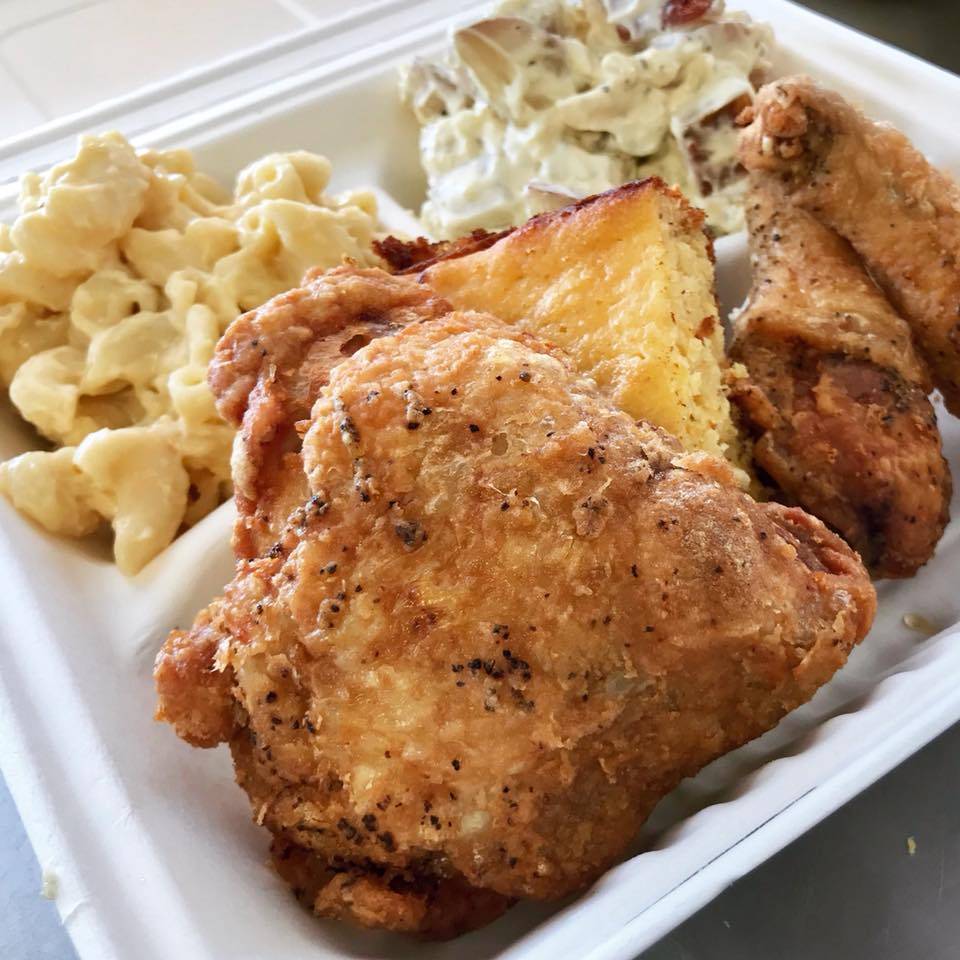 Great chicken fried fresh while you wait. Excellent veggies and Mac and cheese balls with Datil pepper sauce.