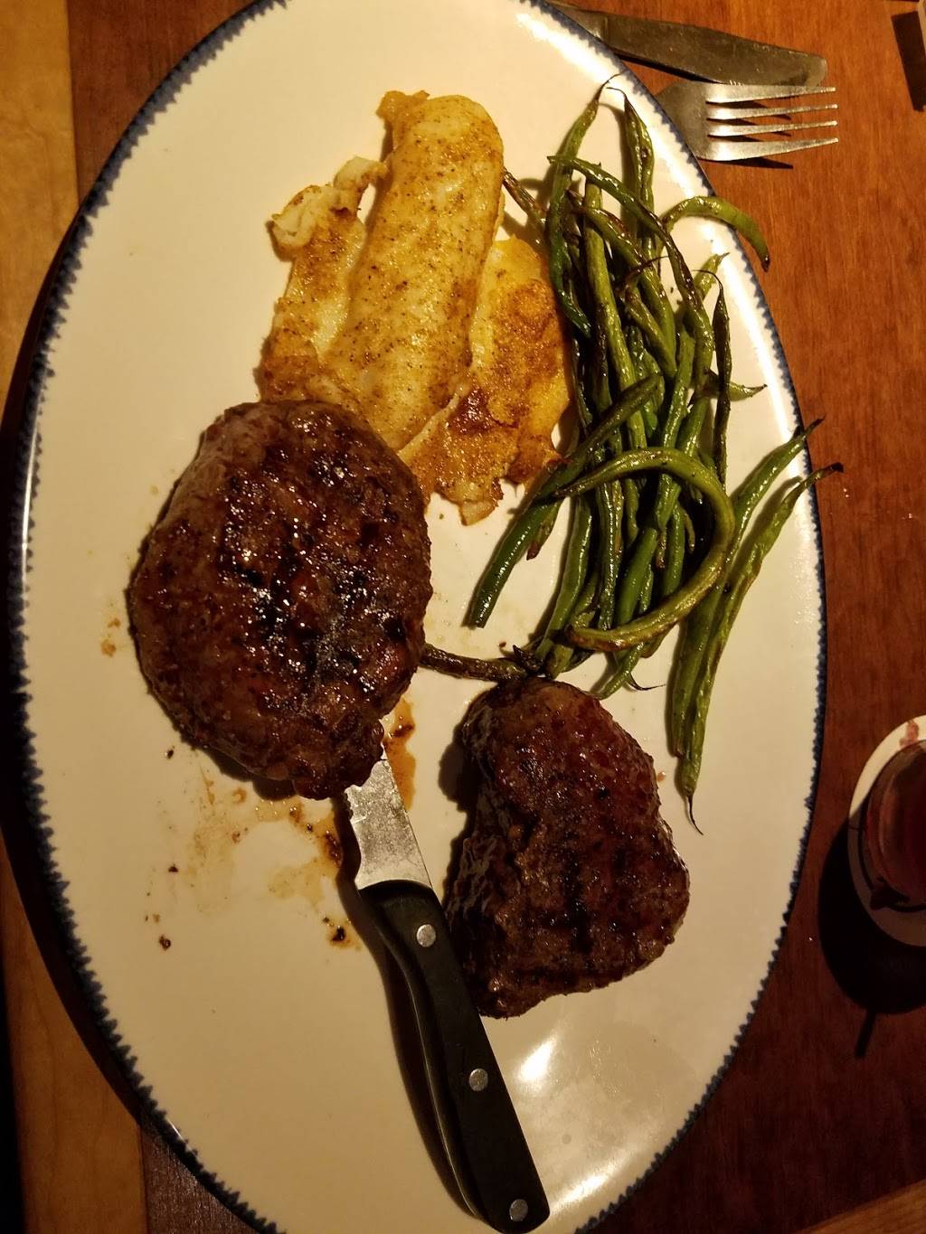 Chain restaraunt - this location looked to be fairly recent construction. Seating and bar area. We were seated promptly and waitress was regularly at our table and friendly. Fish dish that I had was cooked perfectly. Good sized portions.