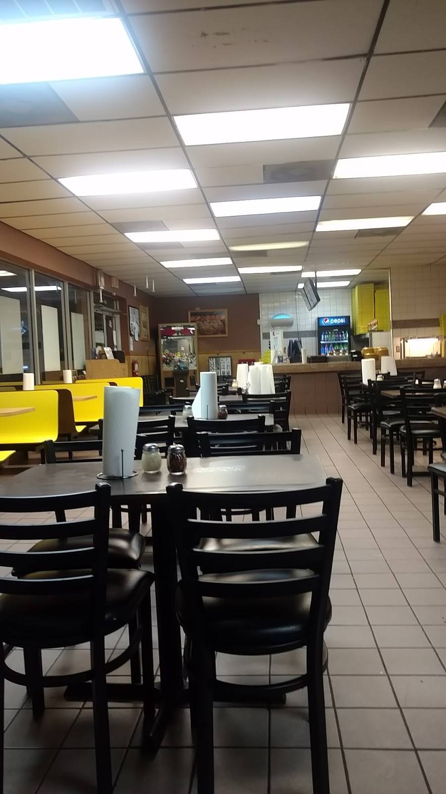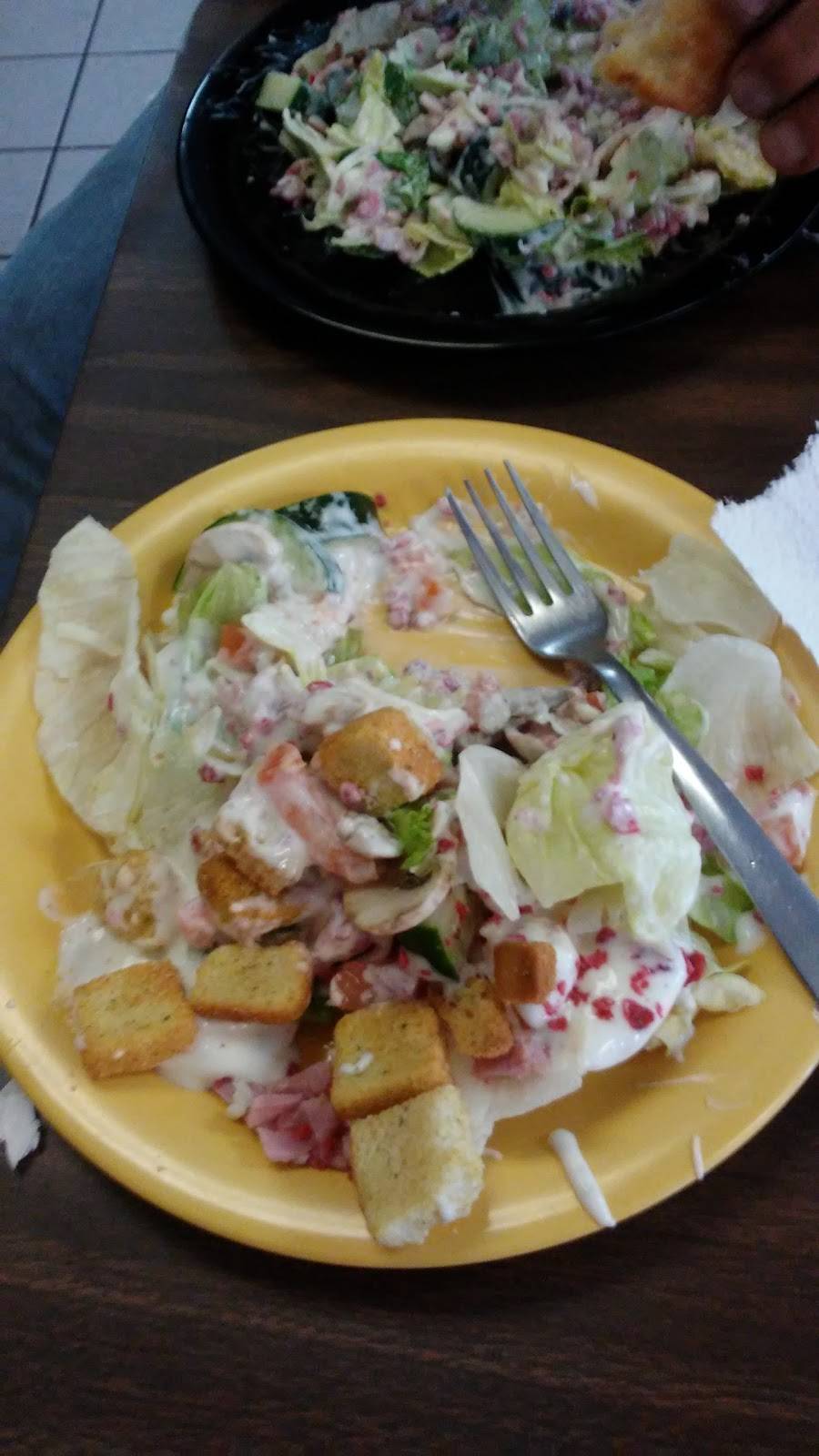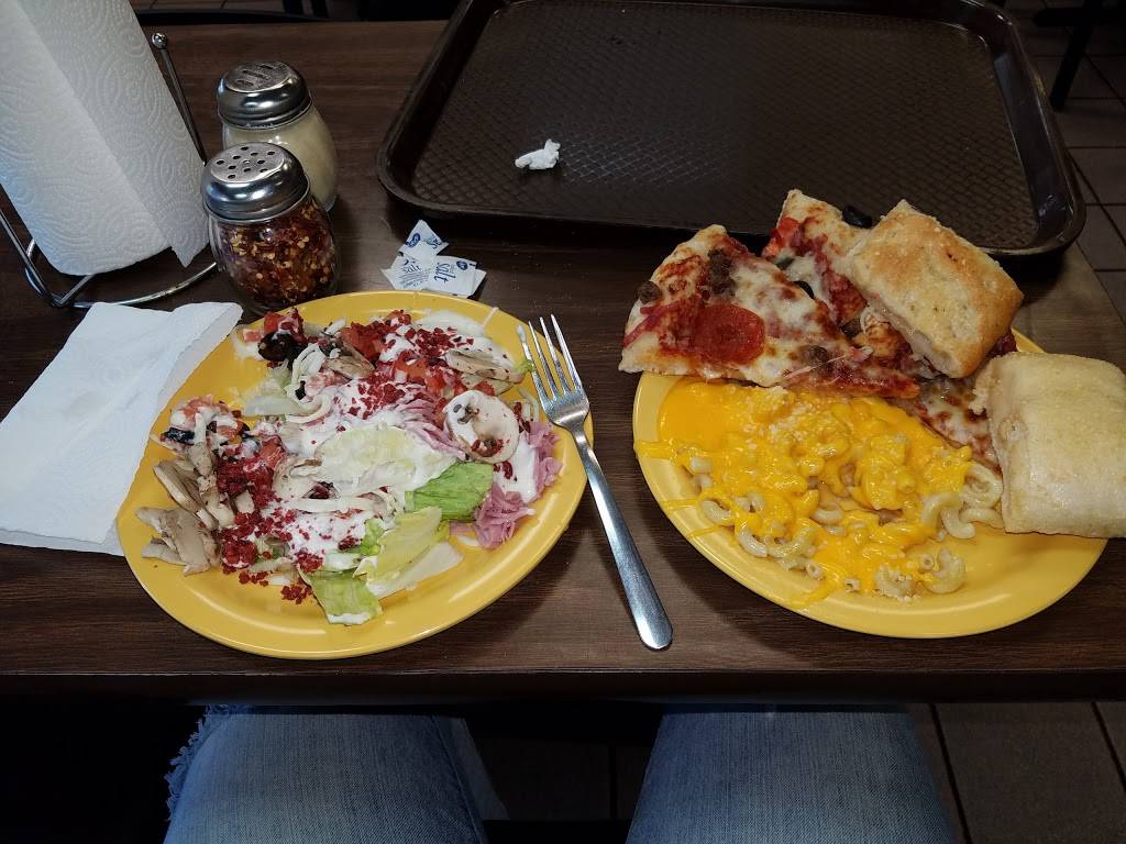 Pizza buffet, well supplied at all hours. Dining room bussed promptly.