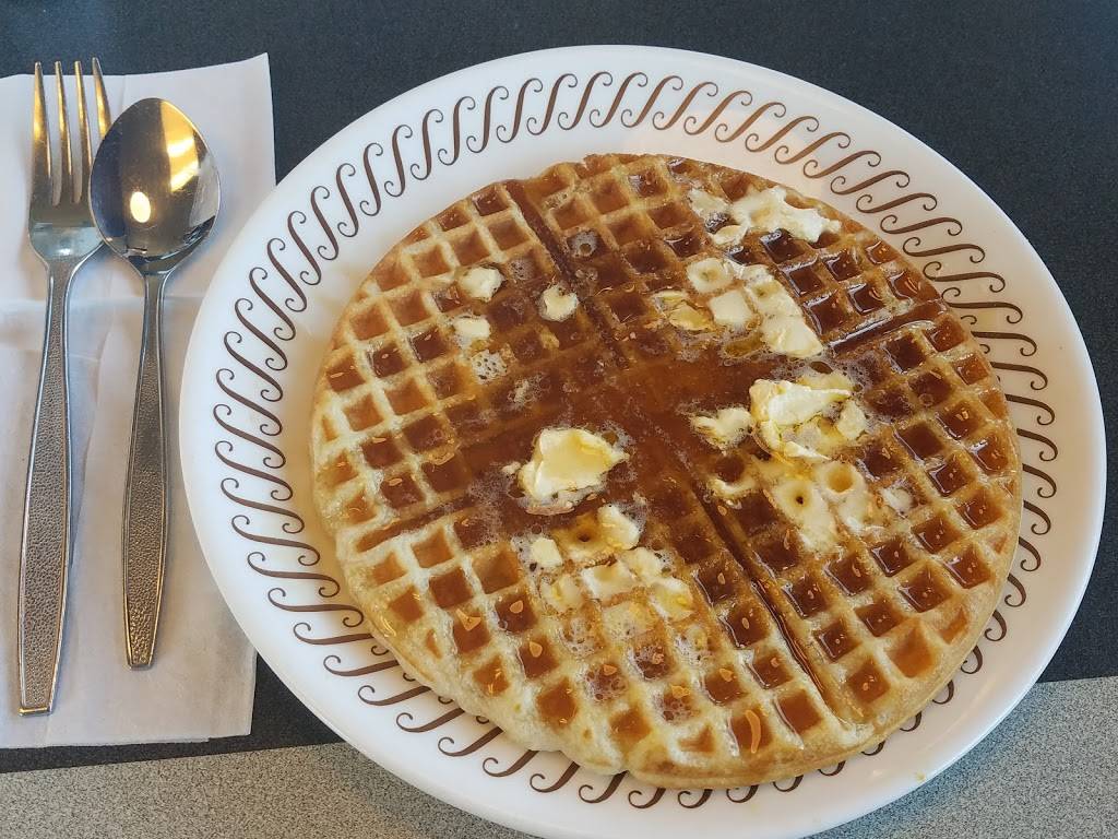 At the Waffle House ... so getting a waffle. You can get regular syrup or sugar free. The waffle itself is ok. They are your standard batter, 3 minute waffles. Mine came with scrambled eggs, very nice. My husband got the hamburger. He said it was very good. The staff was wonderful. It was a bit slow so got to chat a bit. They work the overnight shift and they all get along so a very pleasant meal was had. The restaurant itself was clean . It also has handicap accessible parking, entrance and restrooms. But please watch for sign above because it is set back from the road.