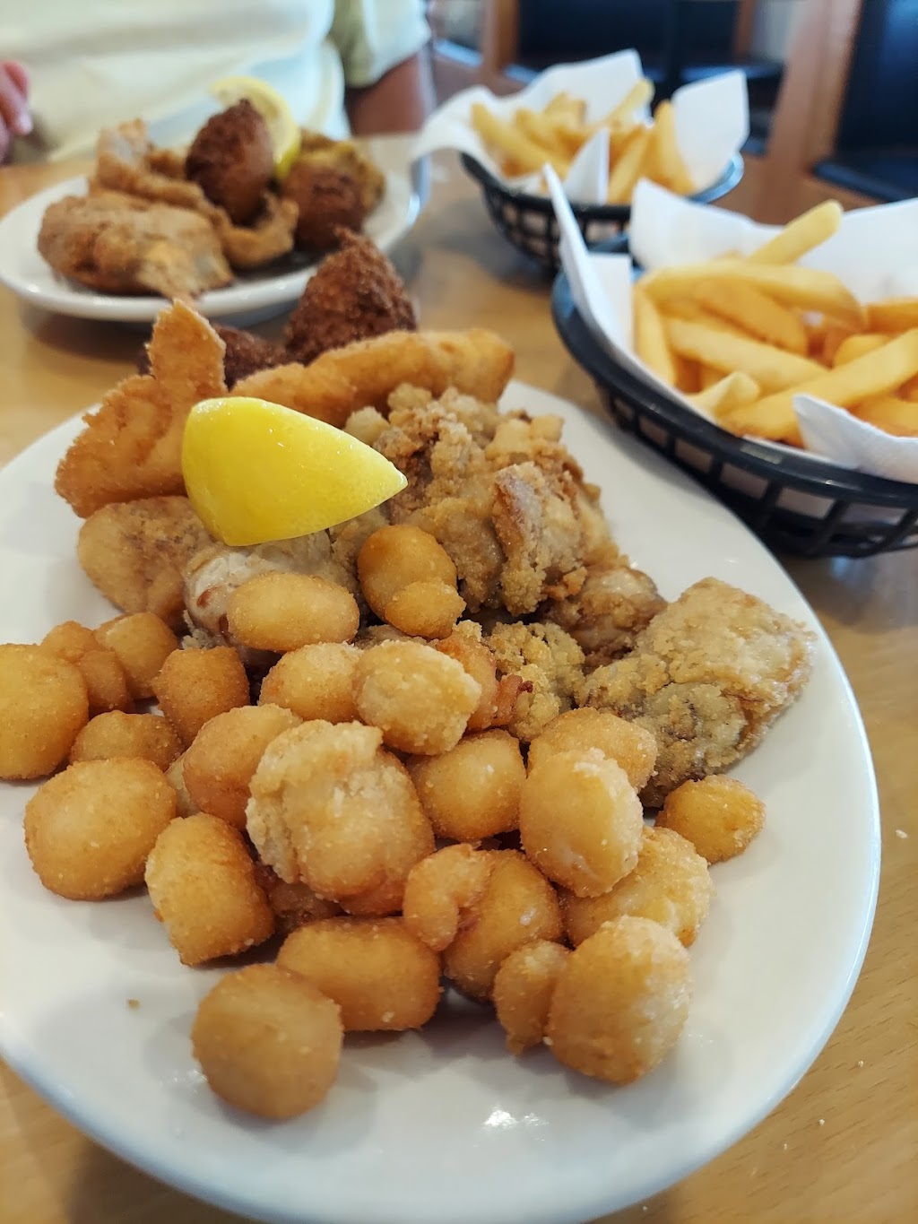 Great seafood. The staff is friendly and always ready to assist you. The salad bar is well stocked and the hush puppies are the best I have ever had. A large verity of seafood, fried, broiled or blackened. Don't miss Roy's if you are in town!