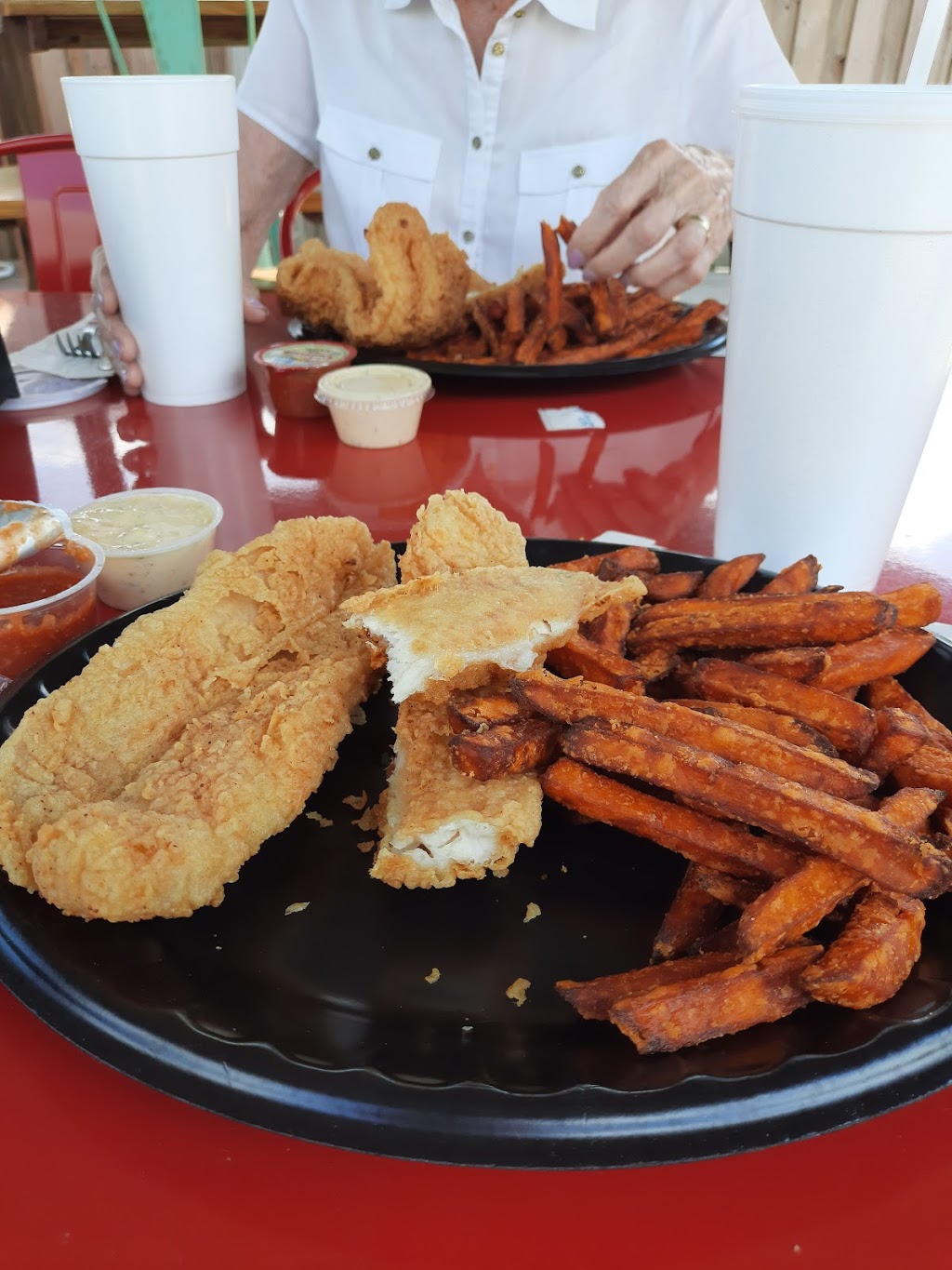 The food was very good. It was both drive up and walk up with outside seating, a very refreshing experience on this great spring day.