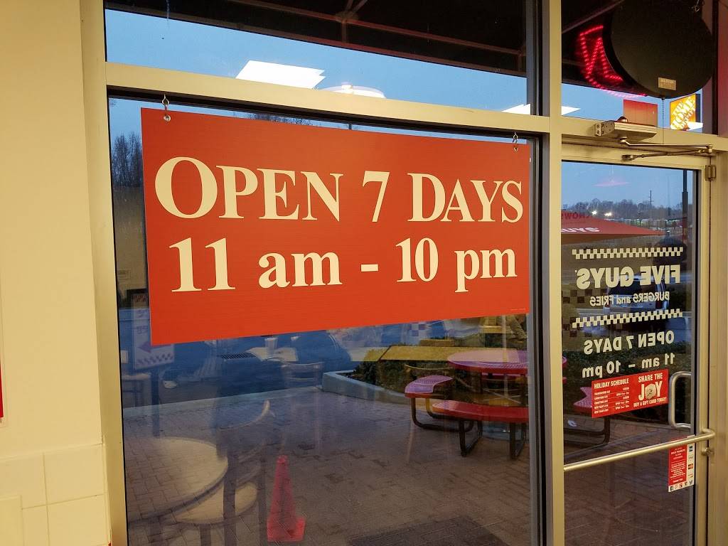 They serve some amazing burgers, hot dogs, fries with a friendly staff. Simply Delicious!! The manager Matthew Seabolt is a nice guy and he definitely keeps a clean restaurant and makes a burger that will knock your socks off! My family and I frequent this Five Guys quite a bit and they have always been spot-on.